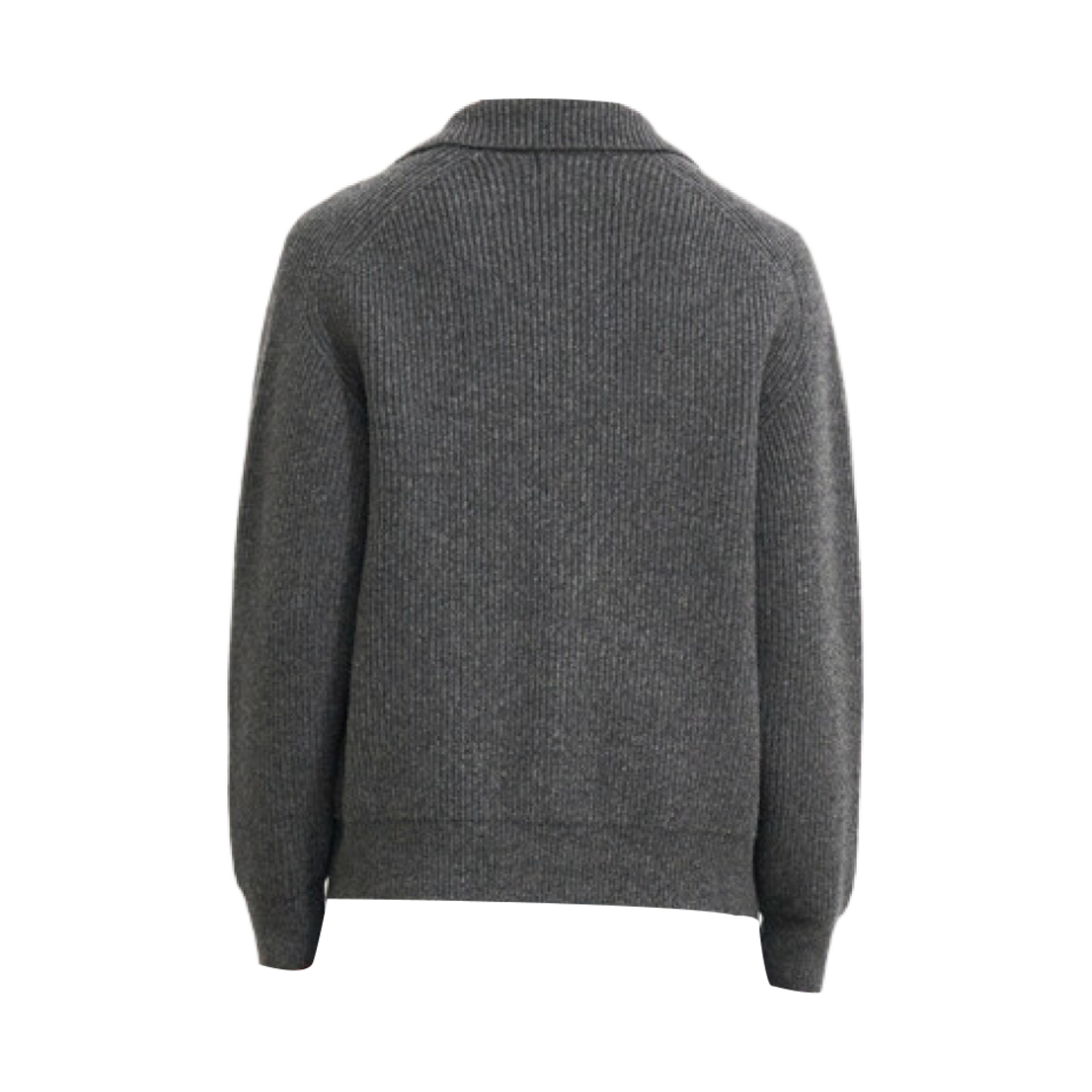 타임 옴므 울 블렌드 립드 집업 가디건 차콜 그레이