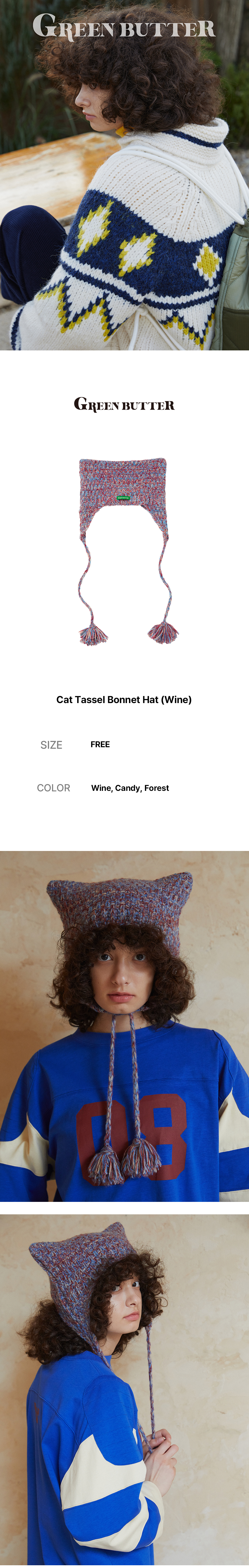 Greenbutter Cat Tassel Bonnet Hat Wine