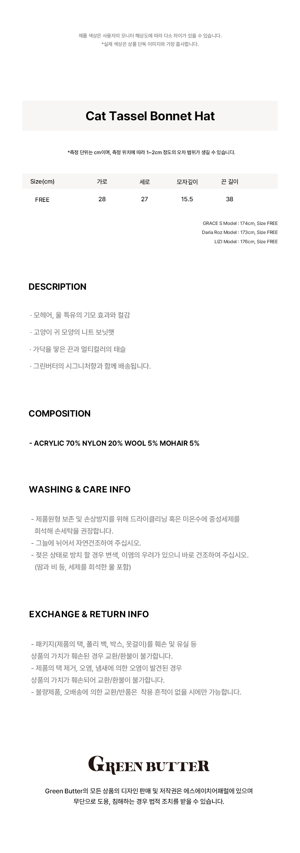 Greenbutter Cat Tassel Bonnet Hat Candy