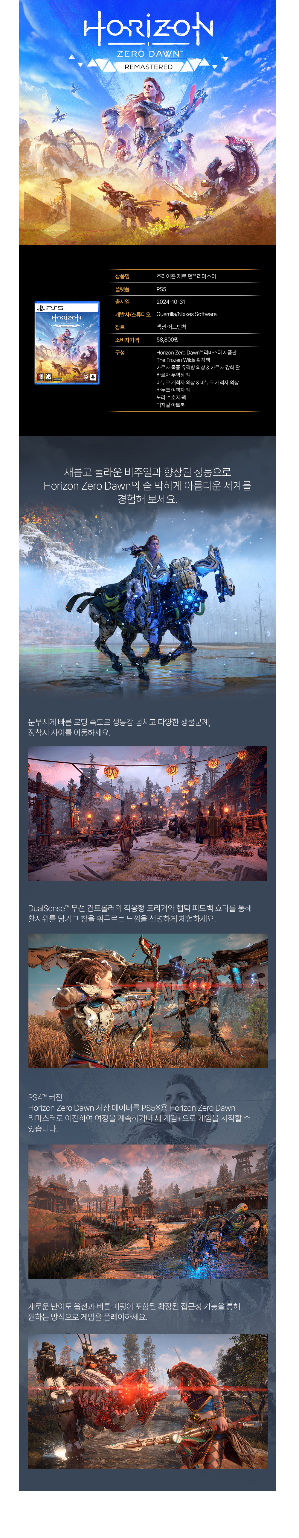 플레이스테이션 5 호라이즌 제로 던 리마스터