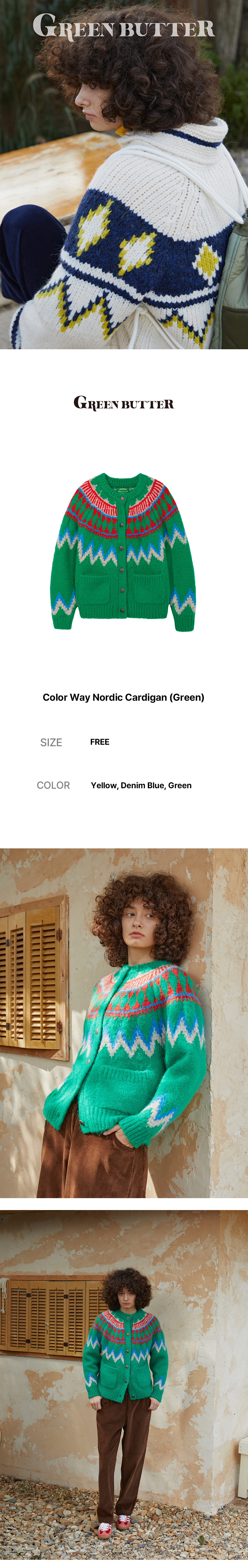 그린버터 컬러 웨이 노르딕 가디건 그린