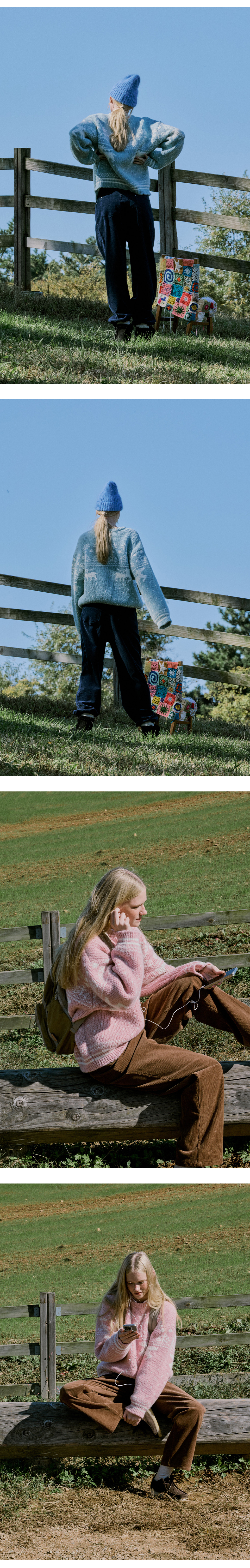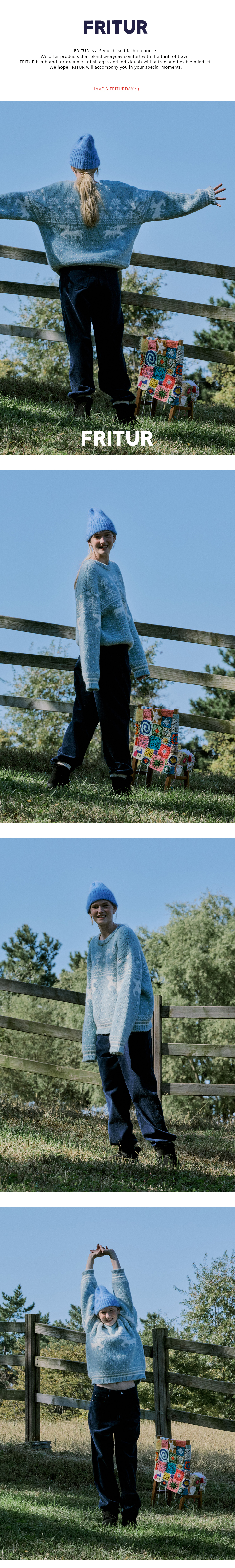노르딕 패턴에 프리터만의 감성을 담아낸 'Nordic Knit'입니다. 포근하고 굵은 원사를 높은 밀도로 짜여 한겨울에도 따뜻하게 착용할 수 있으며, 자체 디자인한 유니크한 노르딕 패턴이 매력을 더합니다. 여유로운 핏과 부드러운 촉감으로 편안한 착용감을 제공하며 따뜻한 느낌의 블루와 핑크 두 가지 컬러로 준비되어 다양한 겨울 스타일에 생기를 불어넣어 줍니다. 캐주얼하게도 감각적인 스타일링으로도 어울리는 'Nordic Knit'로 올 겨울 따뜻하고 감각적인 룩을 완성해보세요.