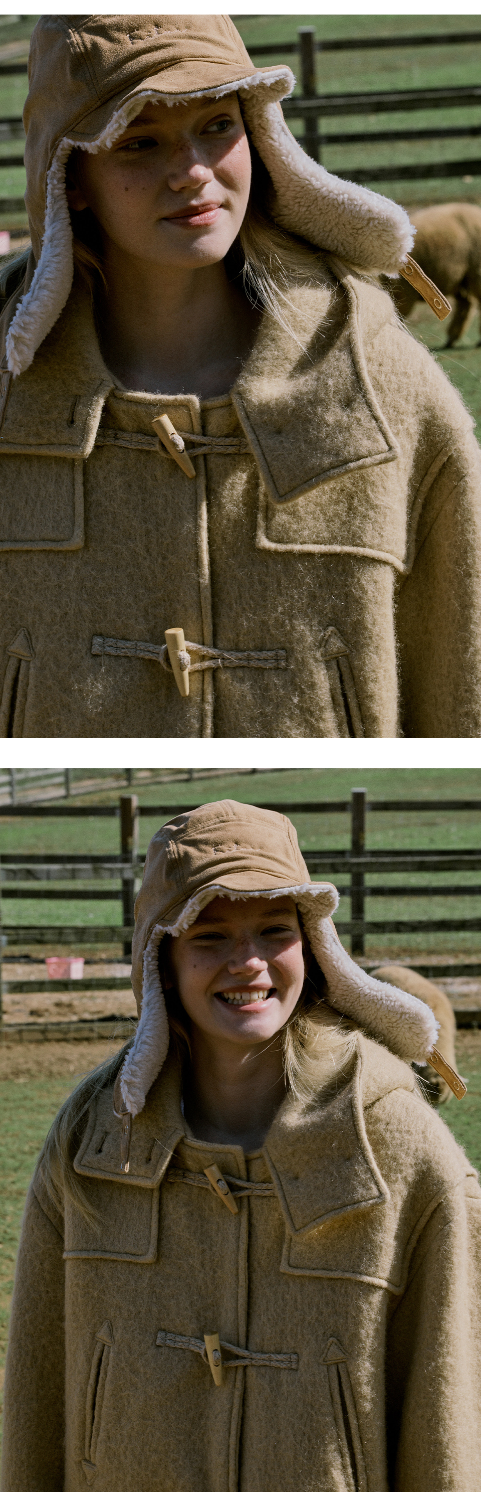 방한복과 해군의 유니폼으로 오래도록 애용 된 클래식한 더플코트 디자인에 프리터의 감성을 담아 낸 'Brook Duffle Coat'입니다. 모헤어 소재가 주는 특유의 포근함과 울의 따뜻함이 어우러져 고급스러운 질감을 자랑하며, 한겨울에도 가벼우면서 탁월한 보온성을 제공합니다. 견고한 패치포켓과 손목 여밈 스트랩, 예쁘게 감싸주는 후드를 부착하여 디자인과 더불어 보온성의 기능적인 부분까지 충실하게 디자인 하였습니다. 코트의 색감과 어우러지는 각각의 소뿔 토글과 스트랩 컬러로 포인트를 주었으며, 활동성이 좋은 하프한 기장감은 편안하면서도 스타일리시한 실루엣을 연출해주어 기나 긴 겨울동안 유연하게 착용 될 아이템입니다.
