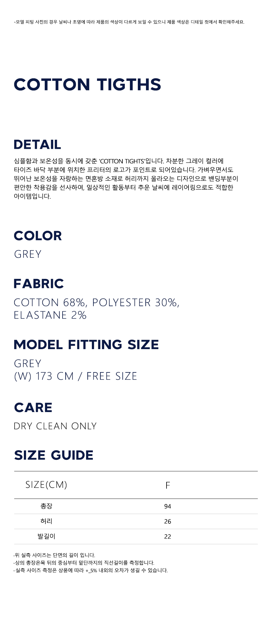 심플함과 보온성을 동시에 갖춘 'Cotton Tights Grey'입니다. 차분한 그레이 컬러에 타이즈 바닥 부분에 위치한 프리터의 로고가 포인트로 되어있습니다. 가벼우면서도 뛰어난 보온성을 자랑하는 면혼방 소재로 허리까지 올라오는 디자인으로 밴딩부분이 편안한 착용감을 선사하여, 일상적인 활동부터 추운 날씨에 레이어링으로도 적합한 아이템입니다.