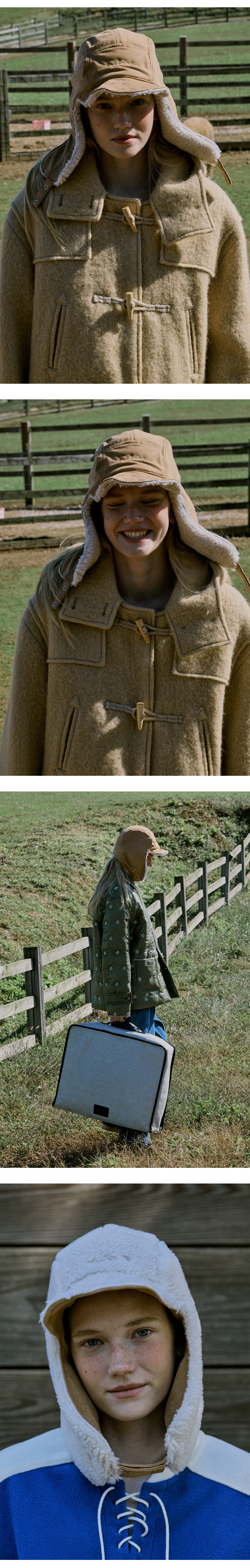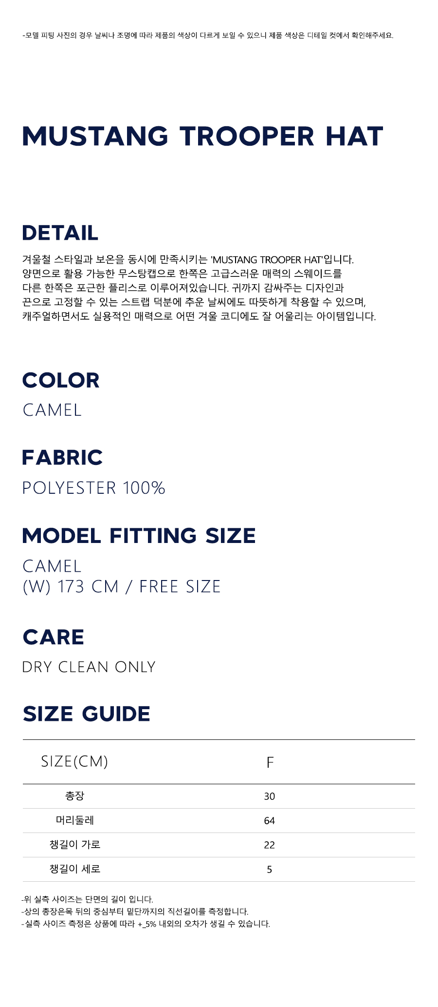겨울철 스타일과 보온을 동시에 만족시키는 'Mustang Trooper Hat'입니다. 양면으로 활용 가능한 무스탕캡으로 한쪽은 고급스러운 매력의 스웨이드를 다른 한쪽은 포근한 플리스로 이루어져있습니다. 귀까지 감싸주는 디자인과 끈으로 고정할 수 있는 스트랩 덕분에 추운 날씨에도 따뜻하게 착용할 수 있으며, 캐주얼하면서도 실용적인 매력으로 어떤 겨울 코디에도 잘 어울리는 아이템입니다.