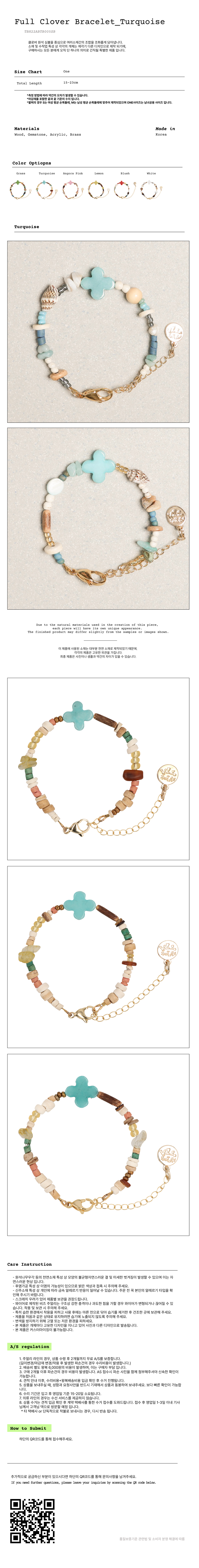 토우토우아카이브 풀 클로버 팔찌 터쿼이즈