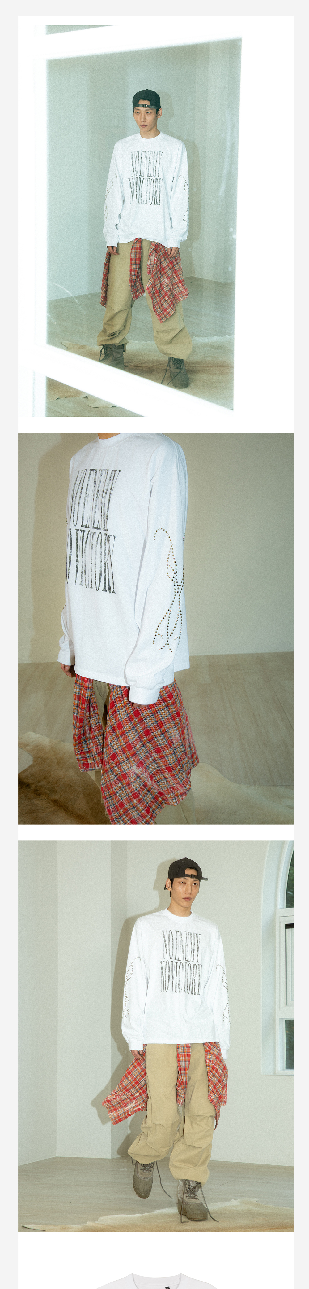 Gatherlazy Vintage Studded Over LS T-Shirt White