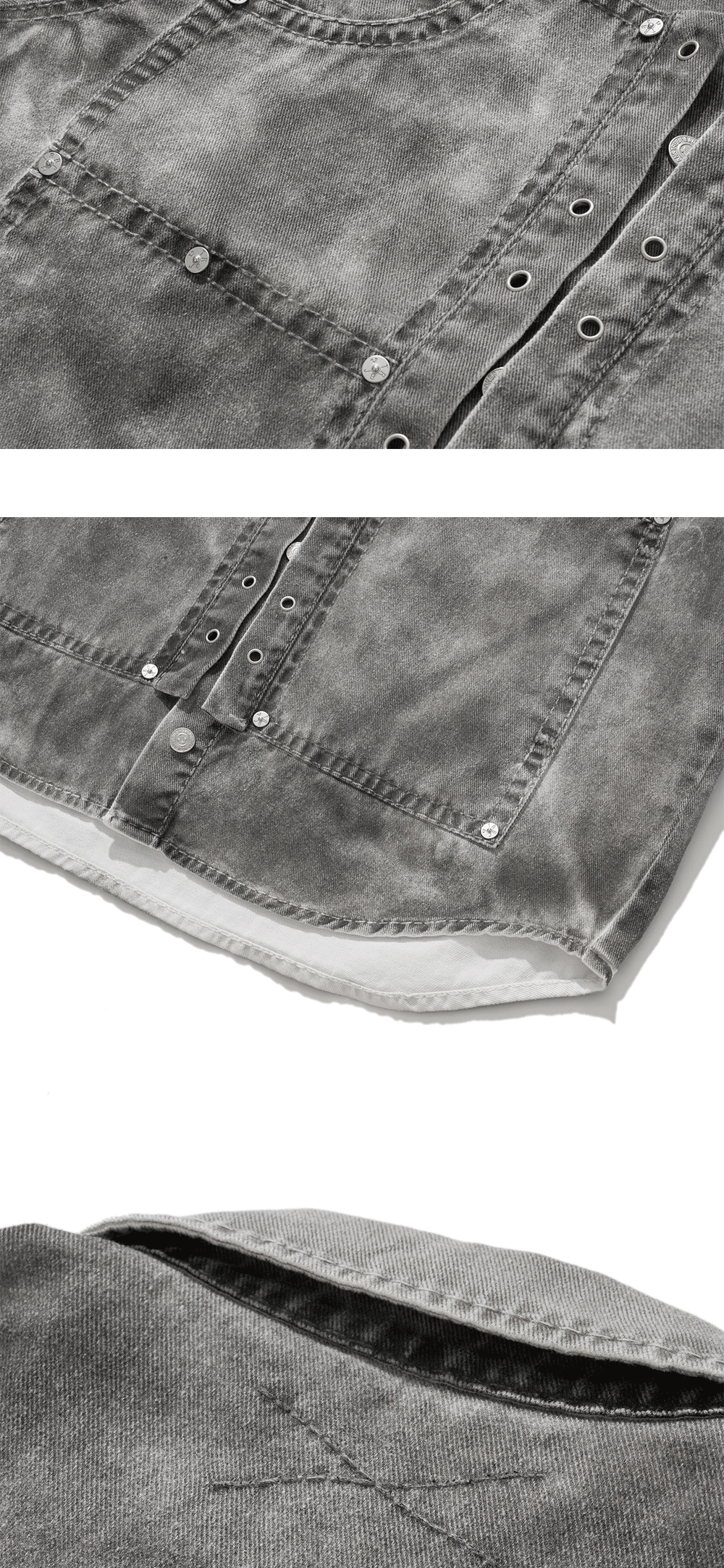 트루릴리젼 빅 T 데님 워크 셔츠 워시드 그레이
