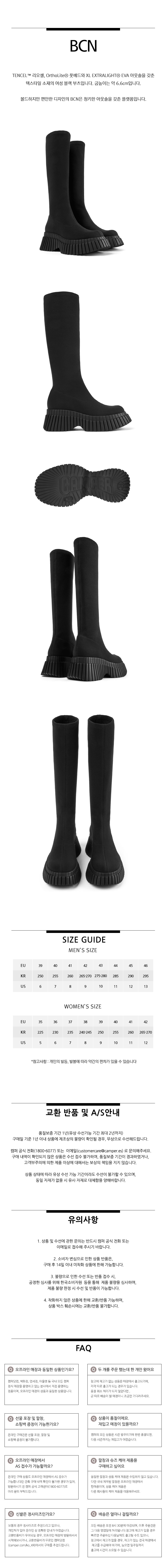 캠퍼 여성 비씨엔 롱 부츠 블랙