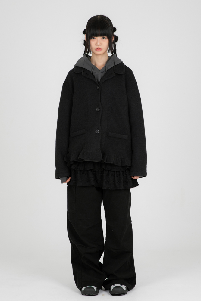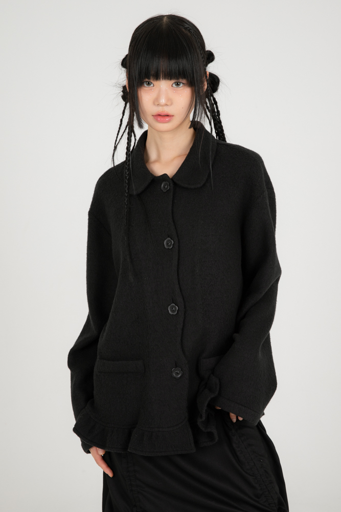 적절한 오버핏으로 단독, 레이어드로도 입기 편하게 디자인한 가디건 자켓입니다, 라운드 카라, 라운드 플라켓, 플라워 단추, 프릴 디테일등 섬세하고 독특한 디테일을 활용해 디자인 했습니다. 다양한 체형에 어울릴수 있는 프리사이즈로 디자인 했습니다. 가벼운 무게감으로 어디에도 편안하게 착용이 가능합니다. 트렌디한 레이어드를 연출할 수 있기 좋은 핏을 가지고 있습니다.