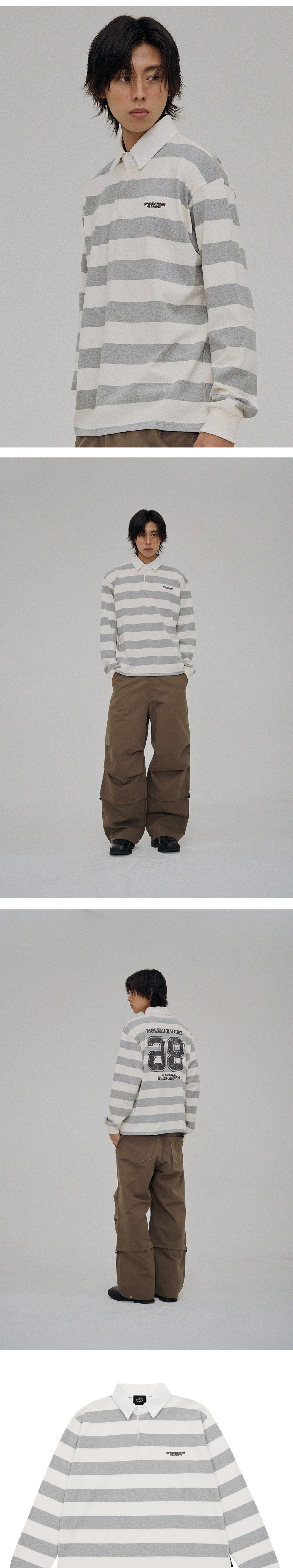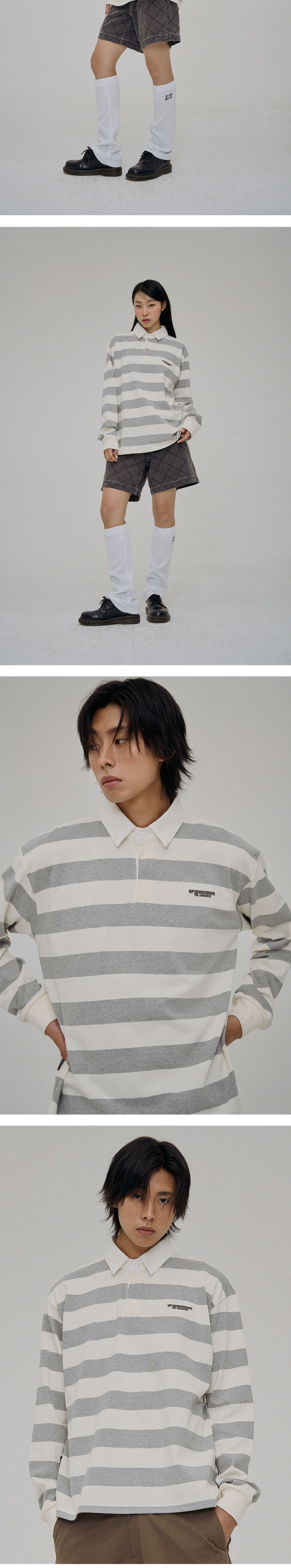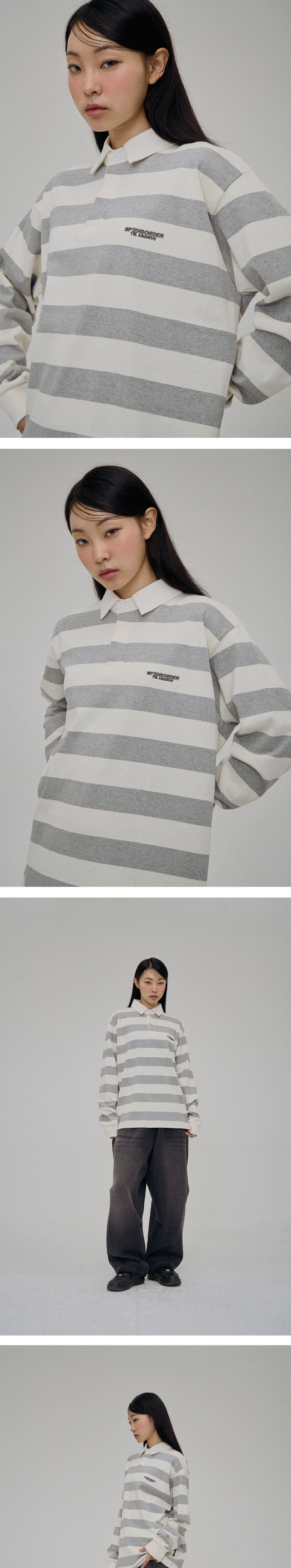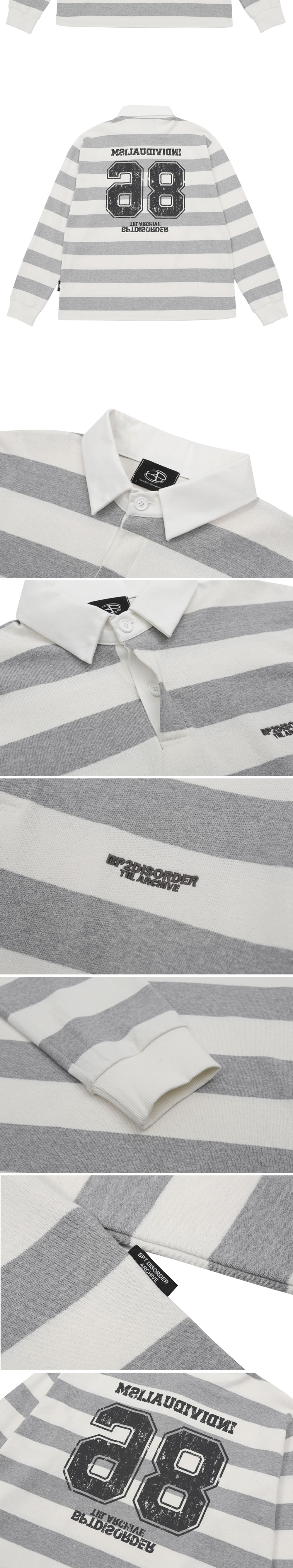비피투디스오더 98 스트라이프 럭비 롱 슬리브 셔츠 그레이