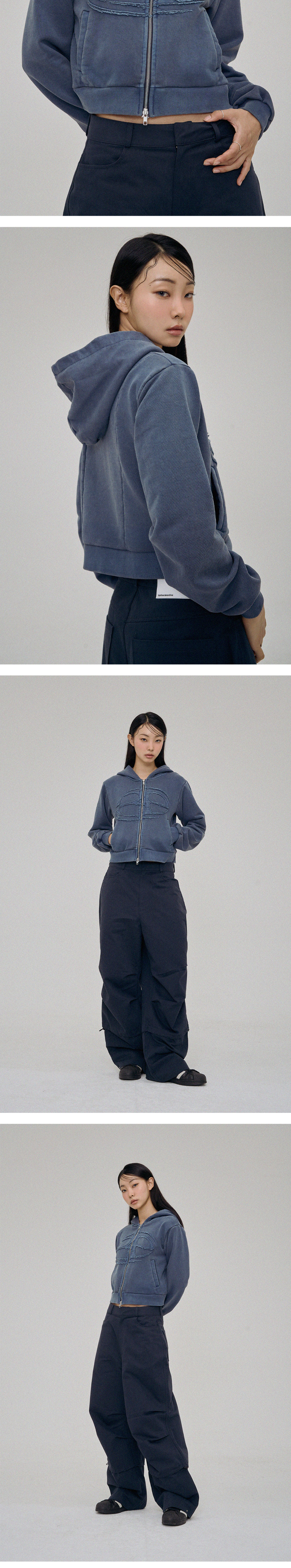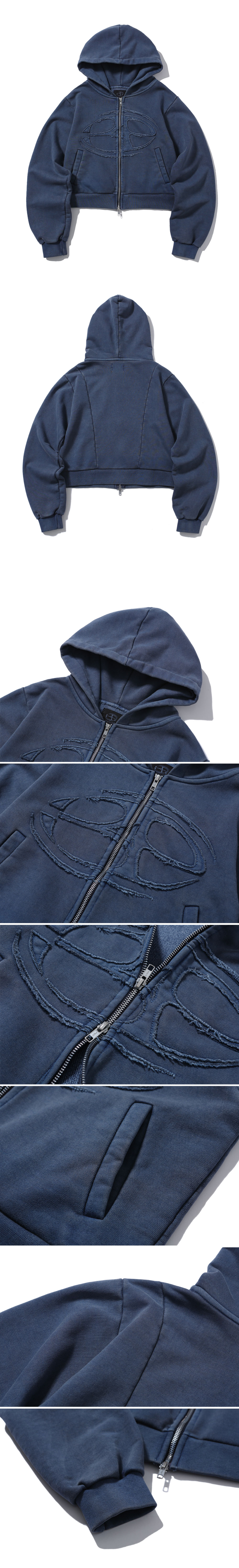 비피투디스오더 어드밴스트 피그먼트 심볼 로고 크롭 후드집업 딥 블루