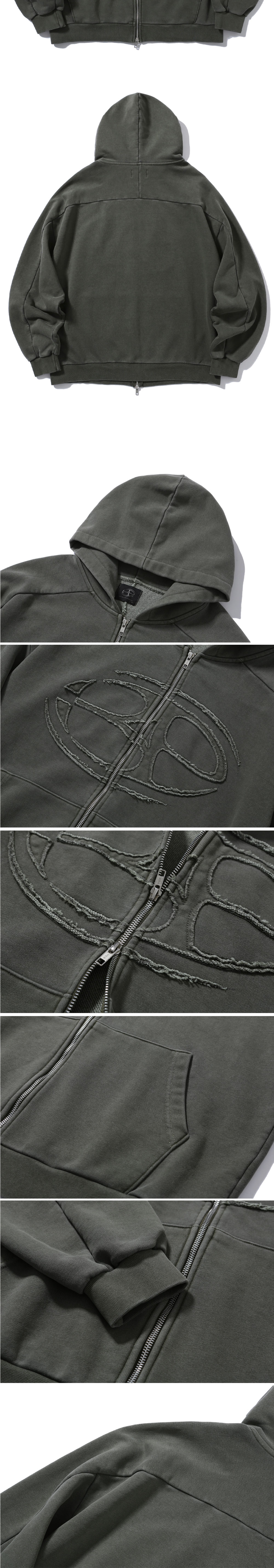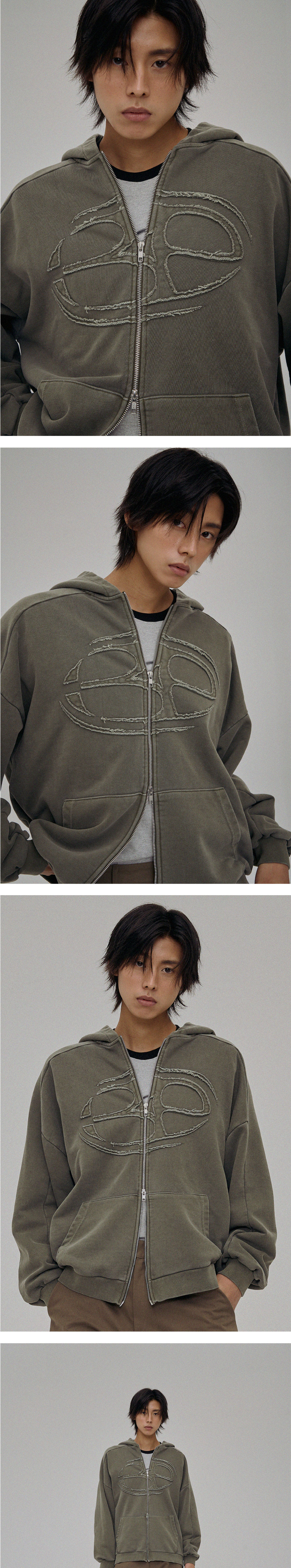 래글런 디테일로 일상에서 웨어러블하게 착용할 수 있는 오버핏 후드집업입니다. 높은 중량감의 두툼한 해비 쮸리 원단을 사용하여 보온성이 뛰어나며, 피그먼트, 바이오 워싱과 통해 빈티지한 색감과 부드러운 촉감을 느낄 수 있으며, 옷의 변형이 적습니다. 심볼 로고 아플리케 자수를 러프하게 마감하여 더욱 빈티지하며 YKK 투웨이 지퍼를 사용하여 강한 내구성과 실용성이 좋아 옷을 오랜 시간 동안 유지 및 착용할 수 있습니다.