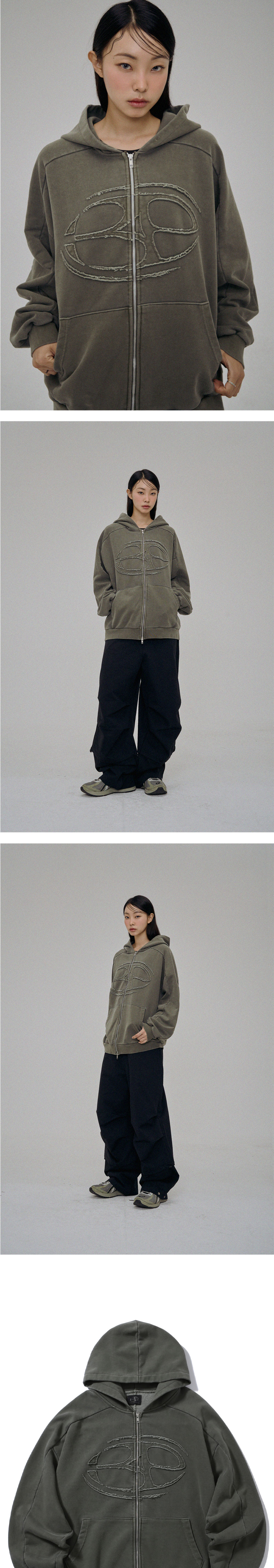비피투디스오더 어드밴스트 피그먼트 심볼 로고 후드집업 카키