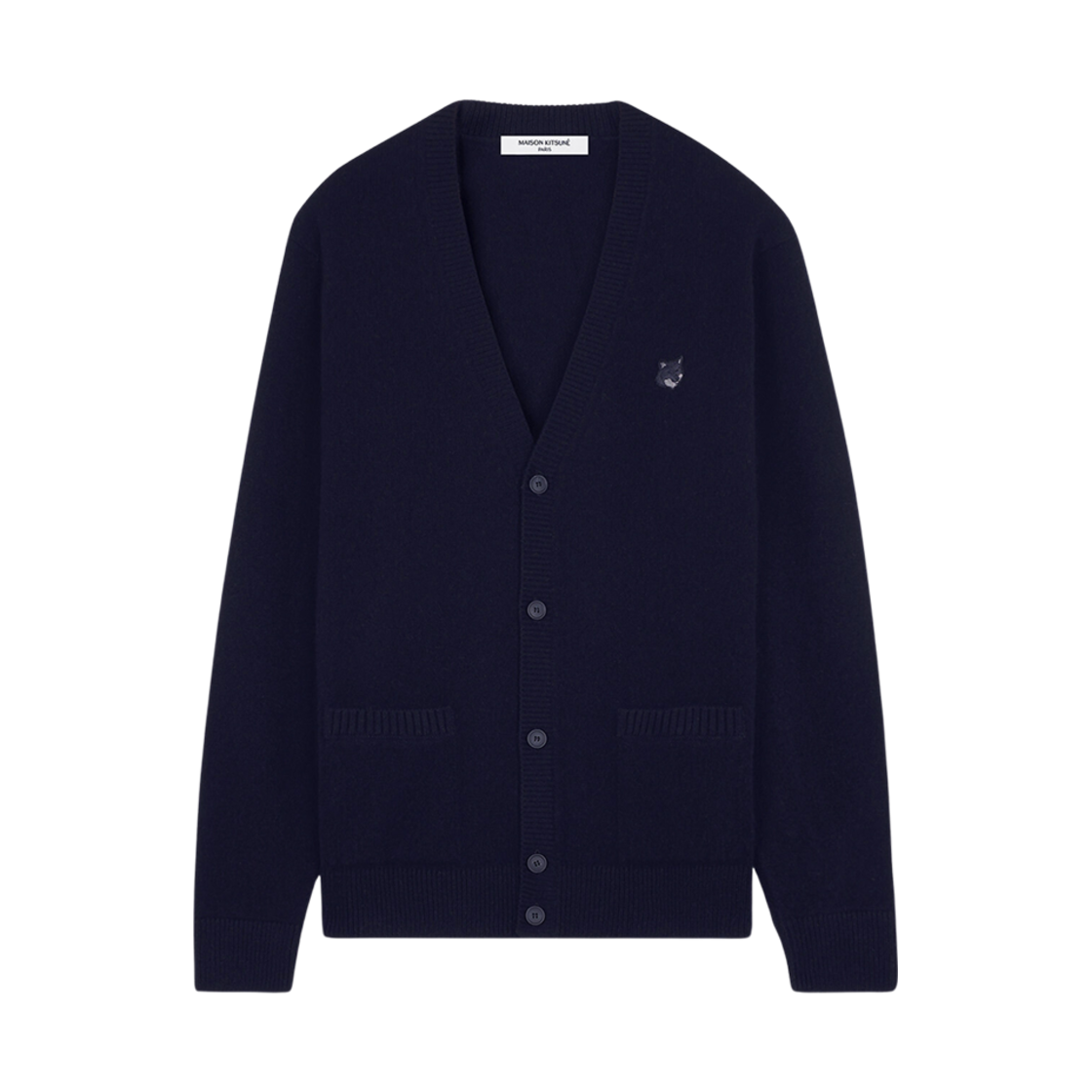 Maison Kitsune Bold Fox Head Patch Regular Cardigan in Lambswoo Navy