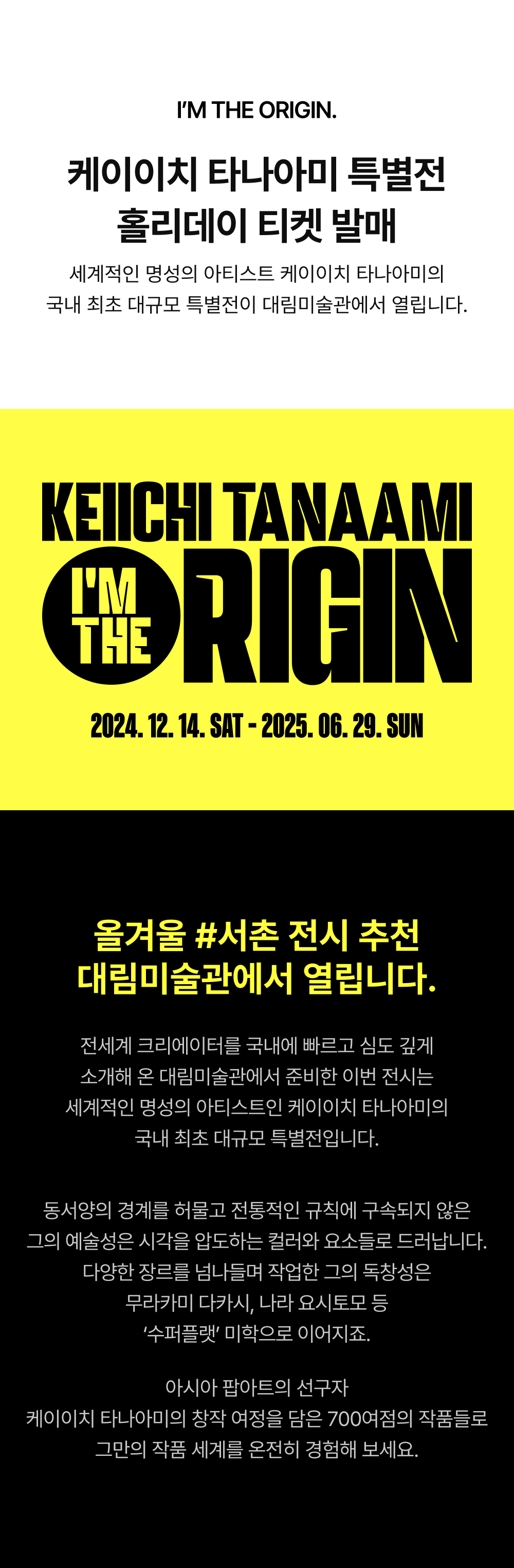 대림미술관 <케이이치 타나아미 특별전> - 홀리데이 티켓