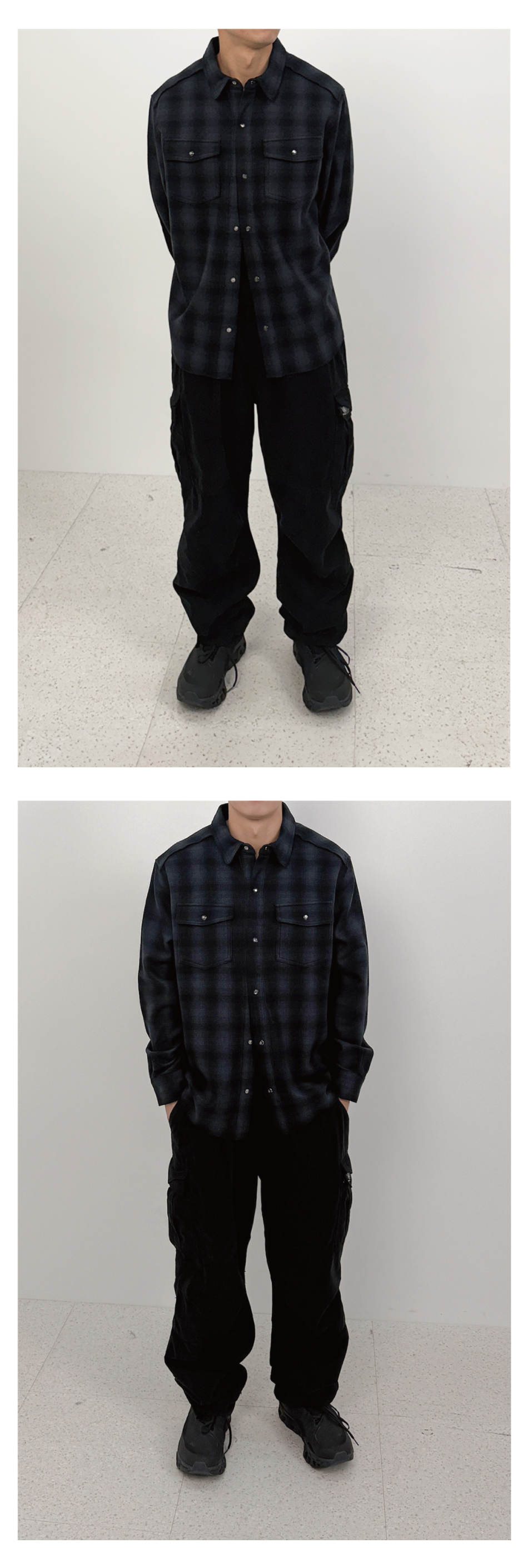 이티씨이 헤비 울 플란넬 체크 자켓 블루