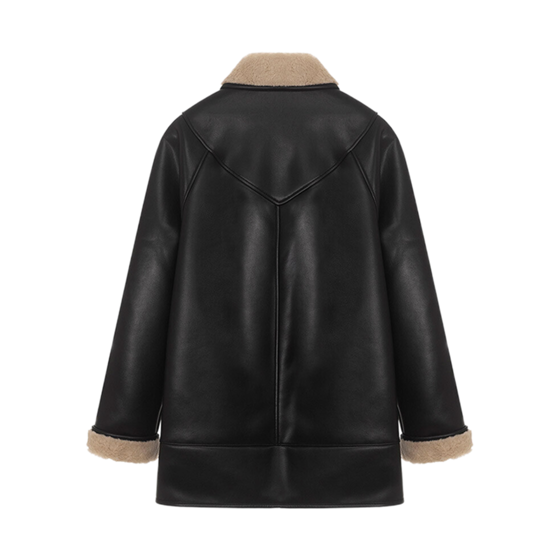 (W) Loeuvre Faux Leather Shearling Coat Jacket Black