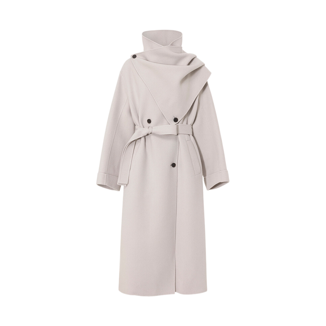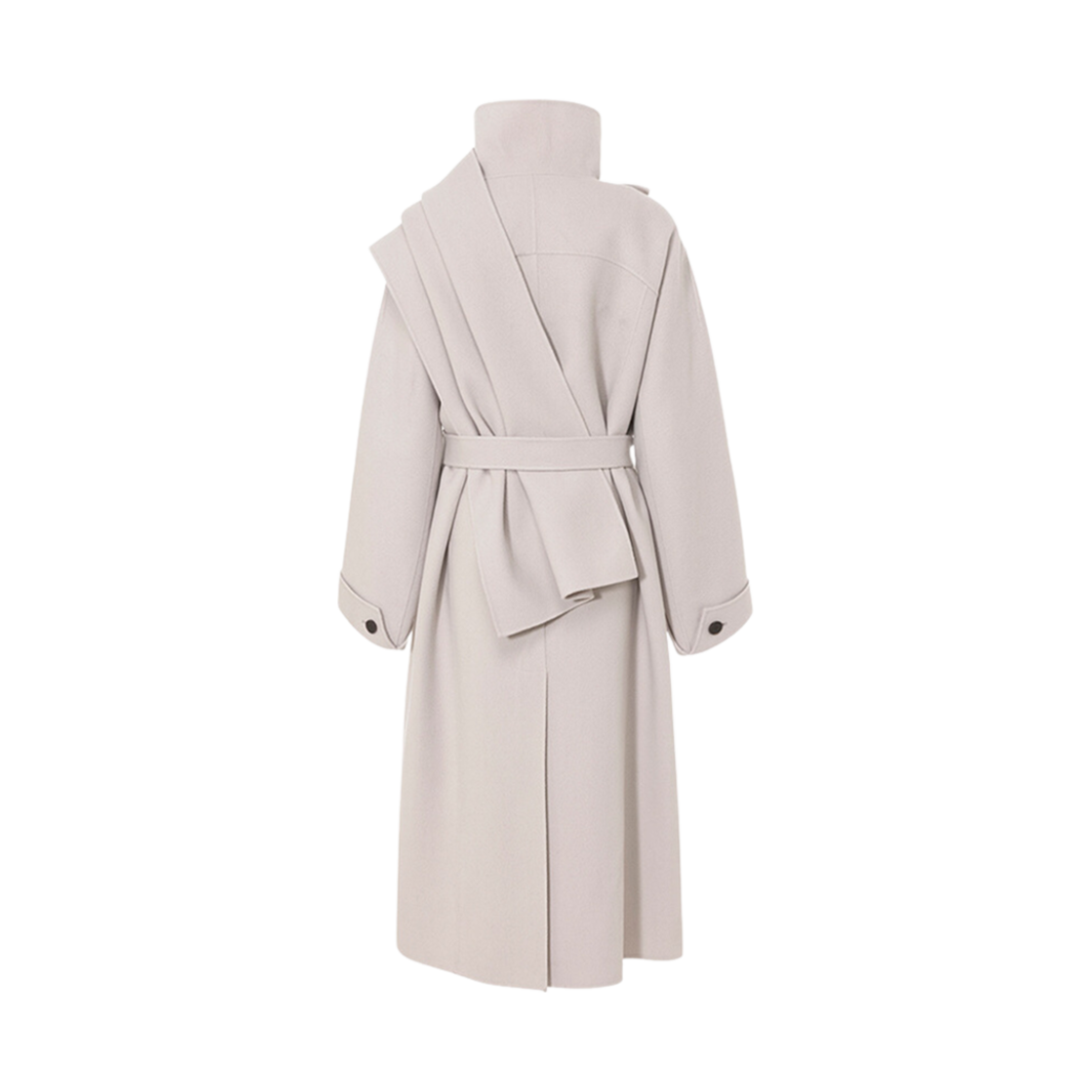 (W) Loeuvre Belted Wool Herringbone Muffler Coat Light Beige