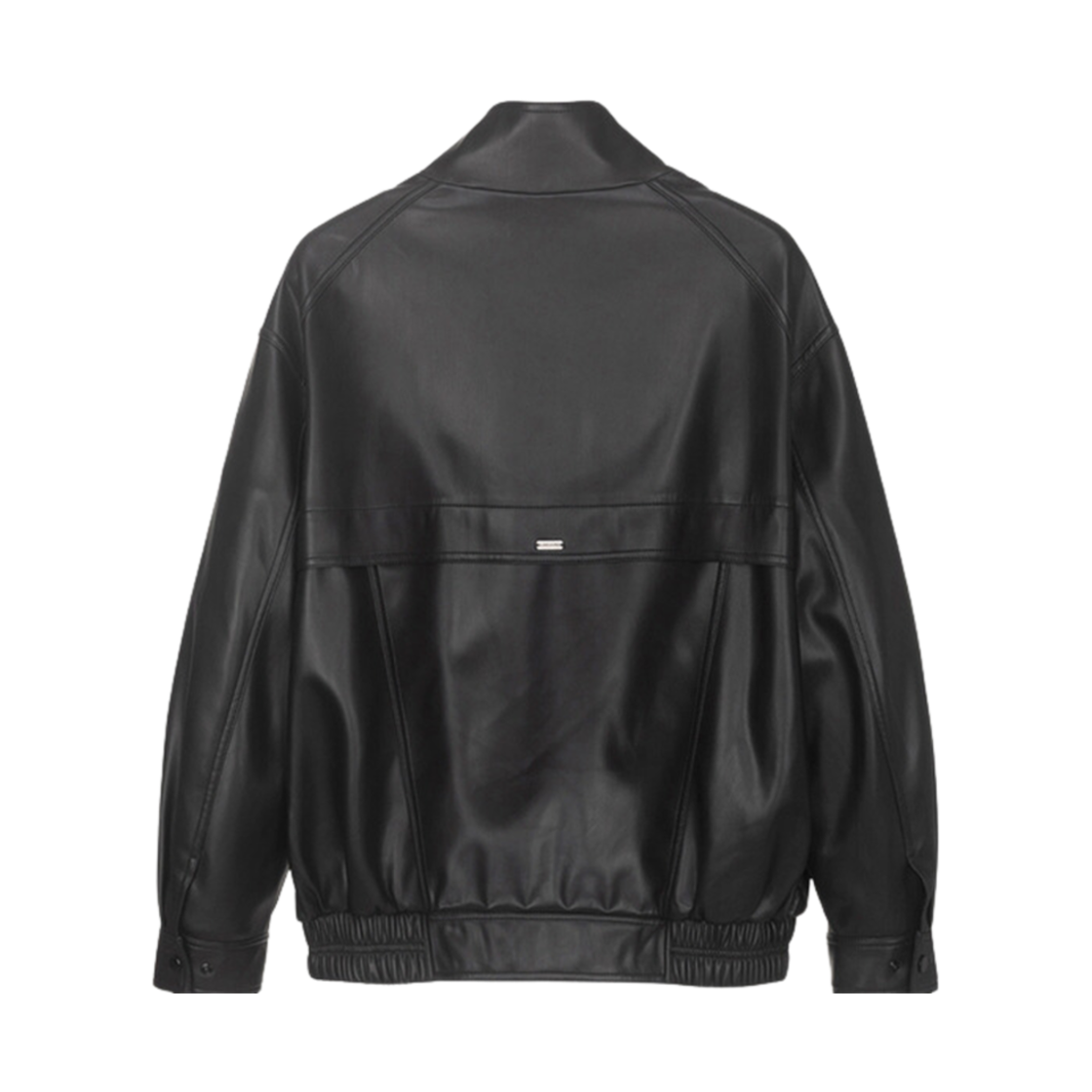 (W) 루에브르 어시메트릭 플래킷 페이크 레더 자켓 블랙