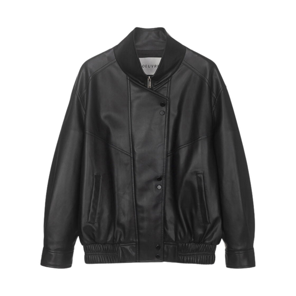 (W) Loeuvre Asymmetric Placket Faux Leather Jacket Black