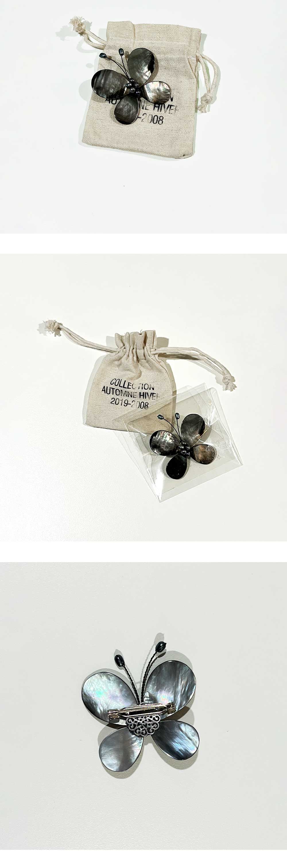 ㆍ천연 흑 자개를 이용해 제작된 마스터 피스 브로치 ㆍ버터 플라이 디자인으로 핸드메이드 세공한 아카이브 제품 ㆍ뒷면의 핀 버튼으로 다양한 곳에 연출 가능 ㆍ유니섹스 아이템