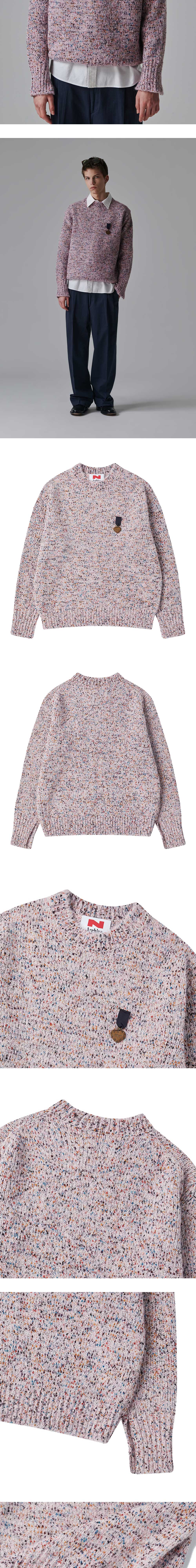 엔 아카이브 러브 맘 배지 헤비게이지 울 블렌디드 니트 핑크