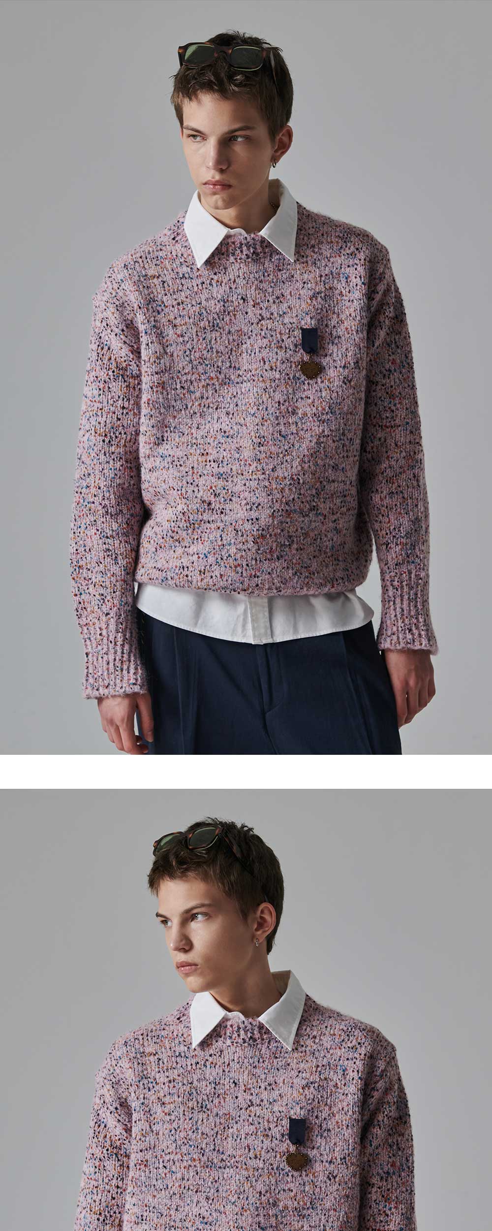 ㆍ울 혼방의 네프사를 사용해 유니크한 원단으로 제작된 헤비 게이지 니트 ㆍ세미 오버핏으로 여유로운 실루엣 연출 ㆍ소매 트임 디테일로 소매를 자연스럽게 연출 ㆍ고 중량의 원사를 사용해 보온성이 우수하며 내구성을 더함 ㆍ 빈티지 메달로 제장된 한정판 배지 (탈부착가능) ㆍ남녀공용 착용 ㆍ여성분들은 M사이즈 착용 권장 ▼ 원단 설명 ▼ (가공내용 아님) 네프사-넵(NEP)이라는 기법을 거친 섬유로 방적 중에 실의 표면에 중간중간 작은 섬유 덩어리가 뭉쳐있는 장식사의 한 종류