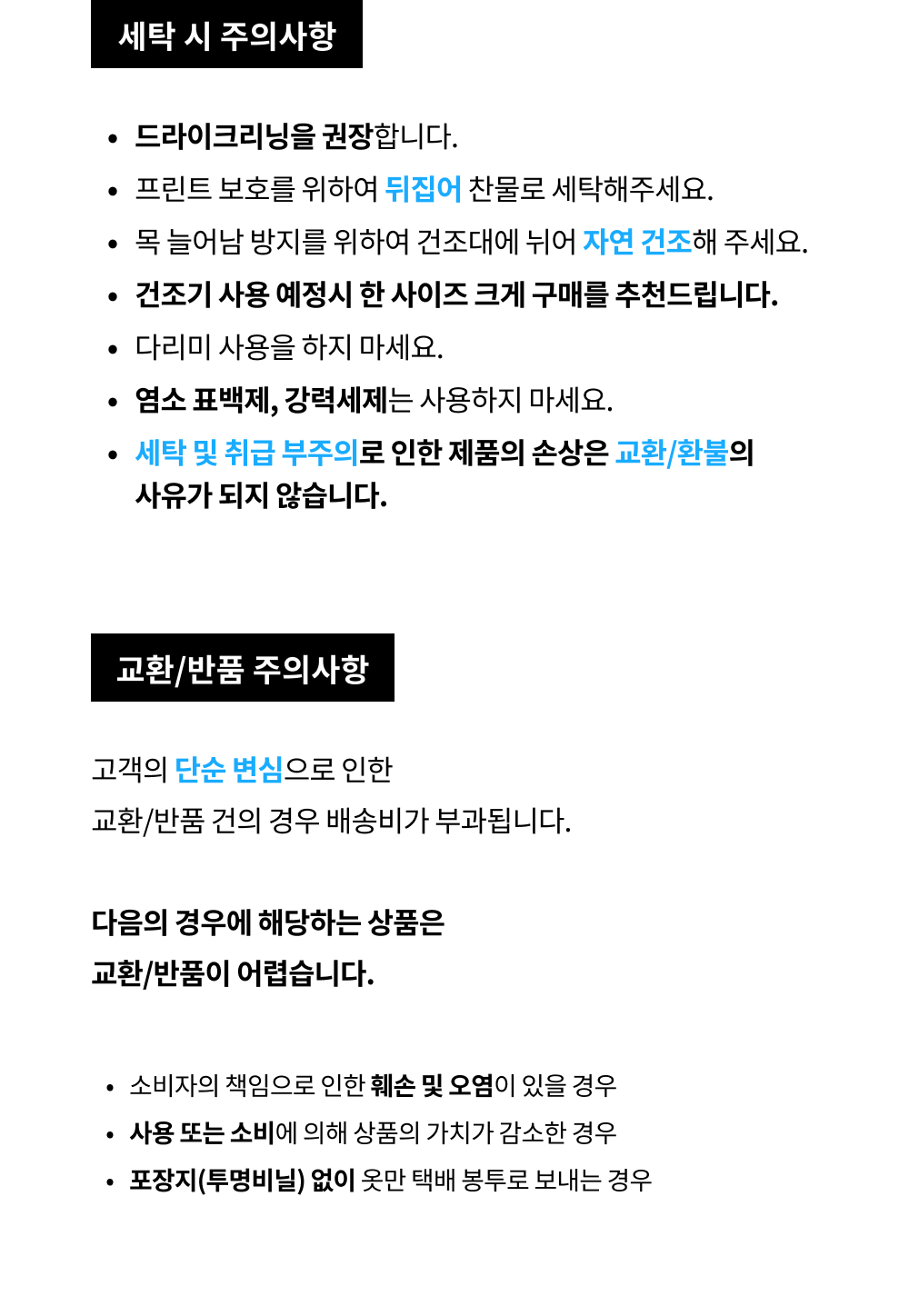 교환 및 반품 안내