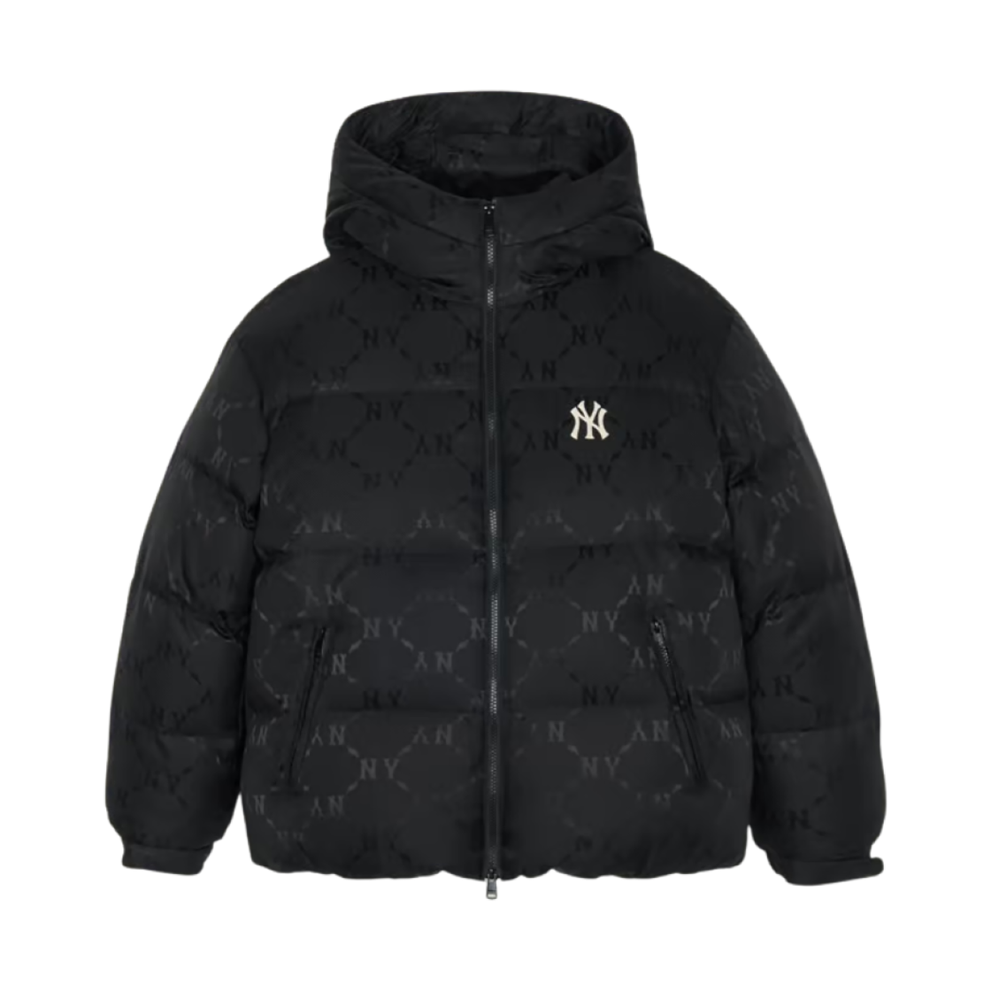 MLB 다이아 모노그램 톤톤 자가드 후드 구스 숏 푸퍼 자켓 뉴욕 양키스 블랙