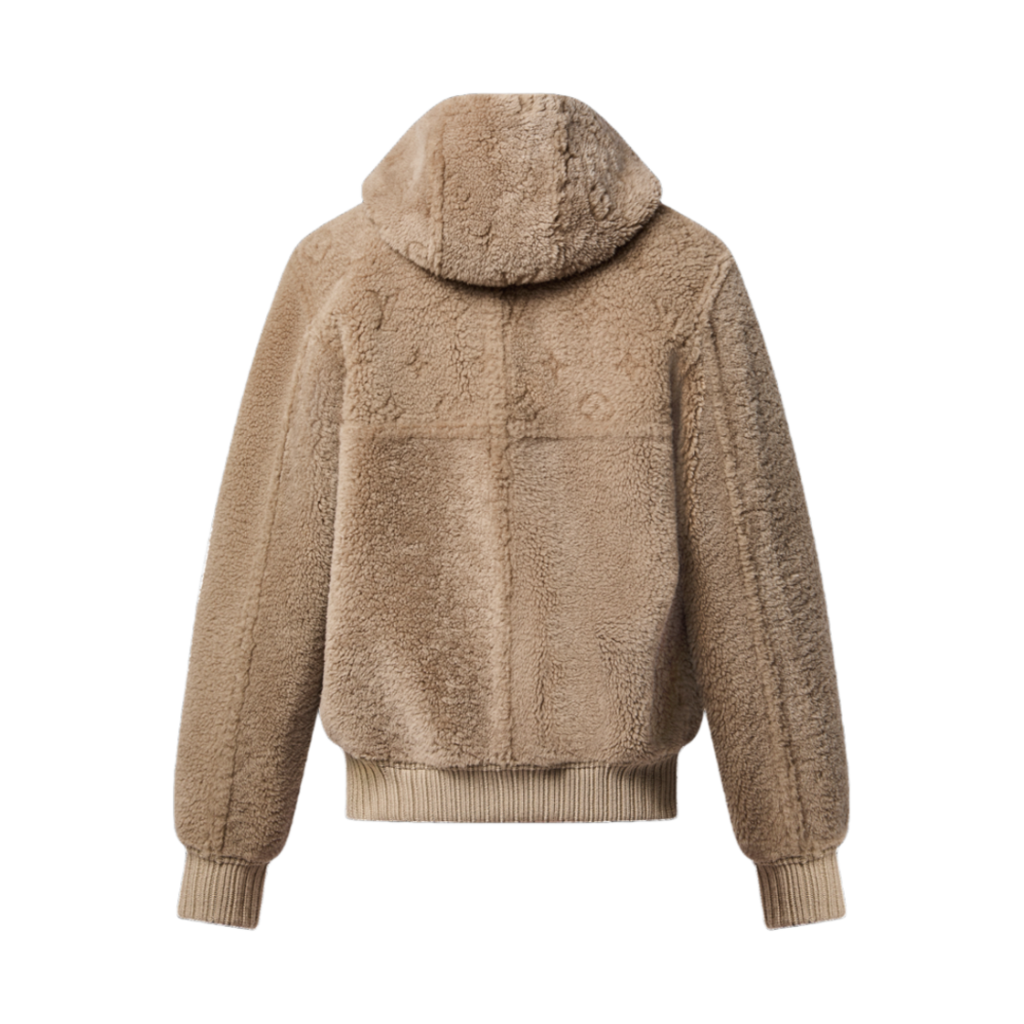 Louis Vuitton Reversible Hooded Shearling Blouson Gray Brown