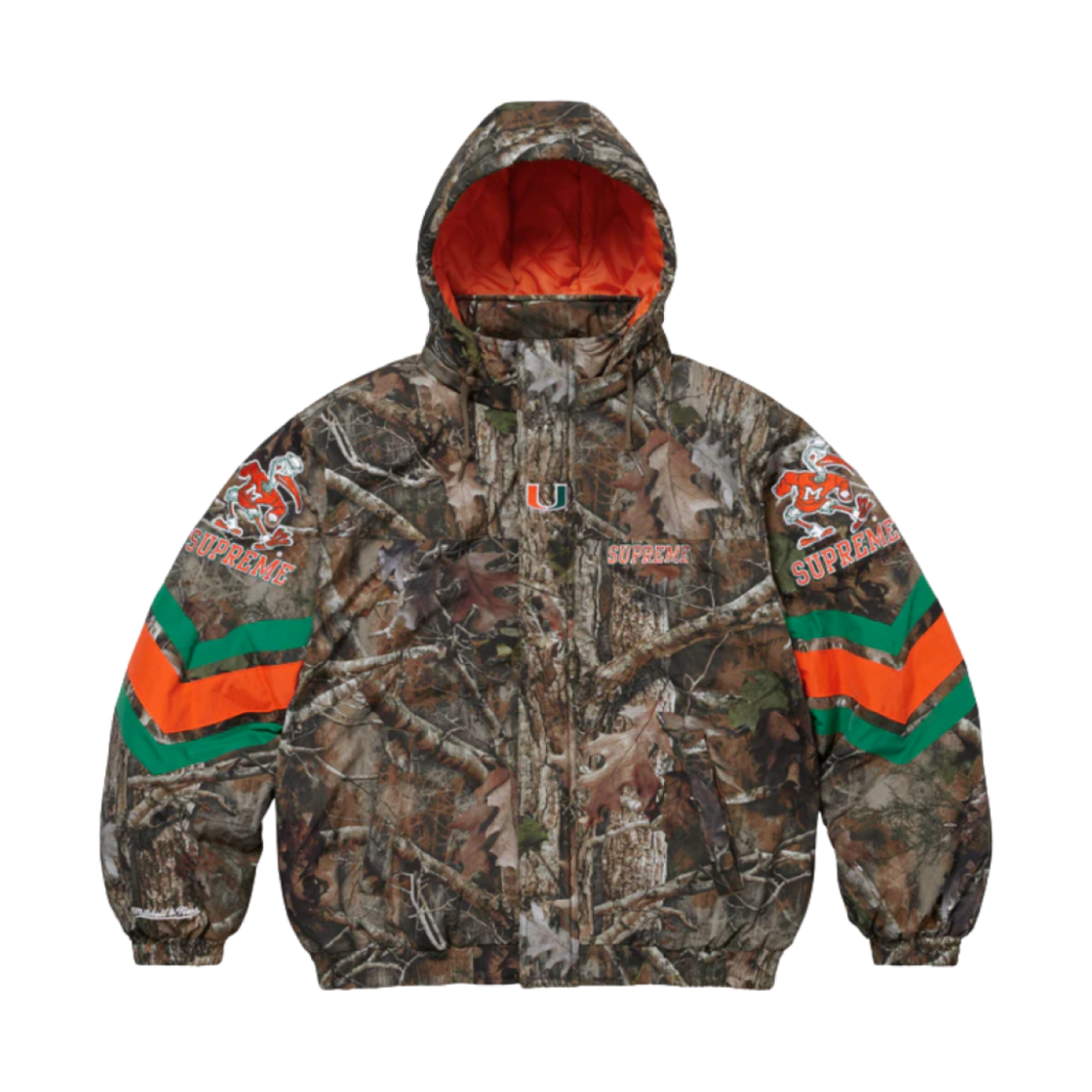 Supreme Mitchell & Ness NCAA Hooded Stadium Jacket TrueTimber Kanati Camo - 24FW