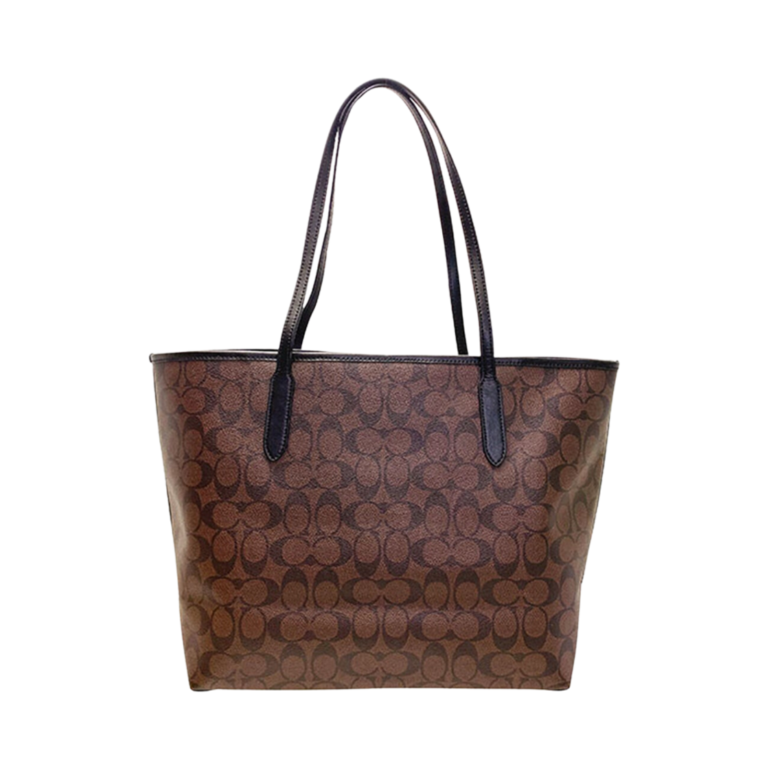 코치 시그니처 캔버스 시티 토트백 이미테이션 골드 브라운 블랙