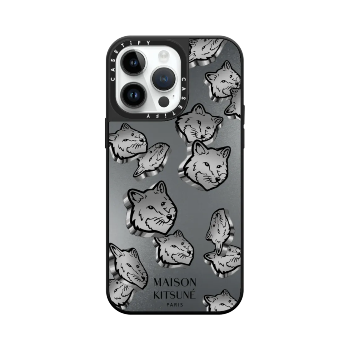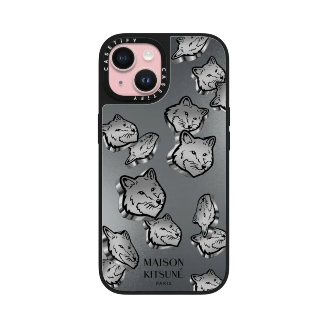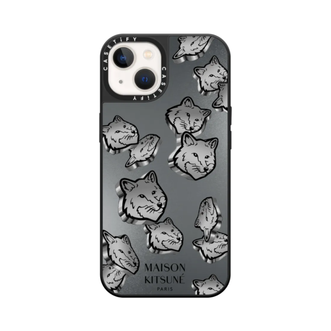 Casetify x Maison Kitsune iPhone Silver Magsafe Mirror Case Silver Mirror Black Bumper