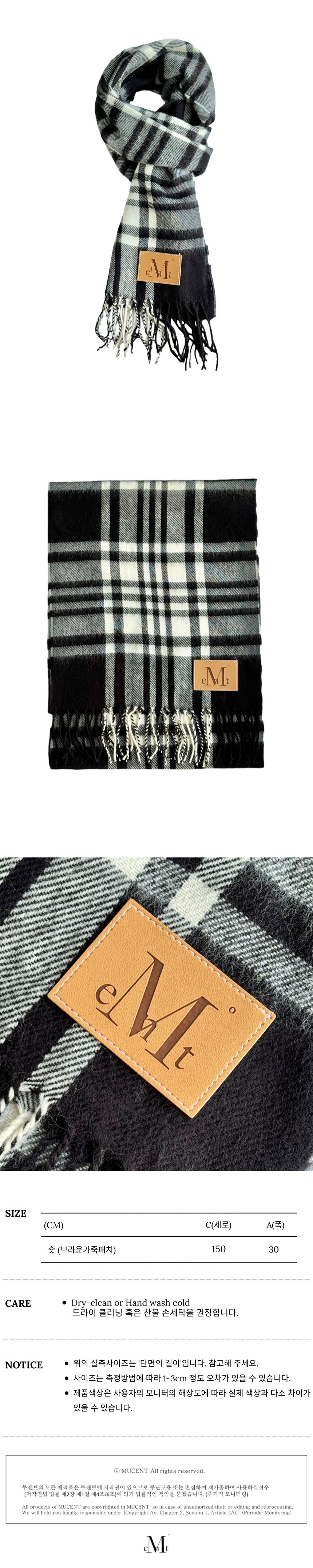 무센트 시그니처 머플러 브라운 레더 패치 숏 블랙 체크