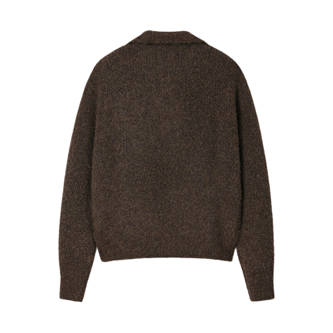 Tonywack Wool Blend Boucle Zip Sweater Brown