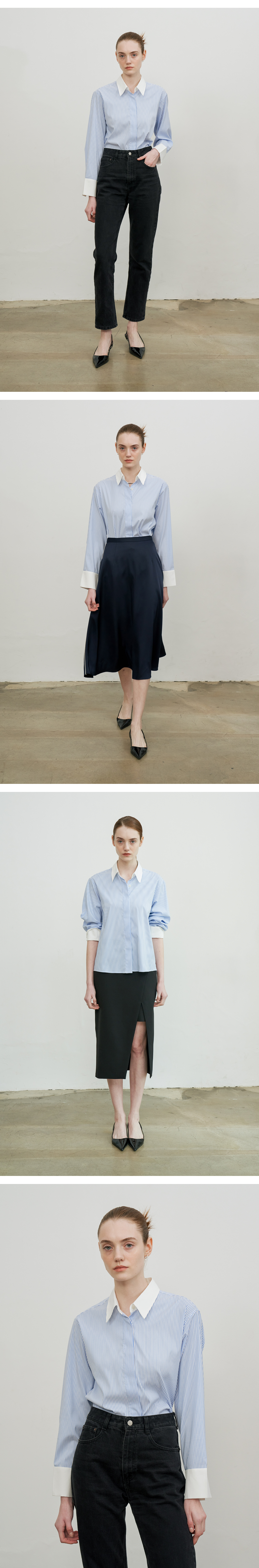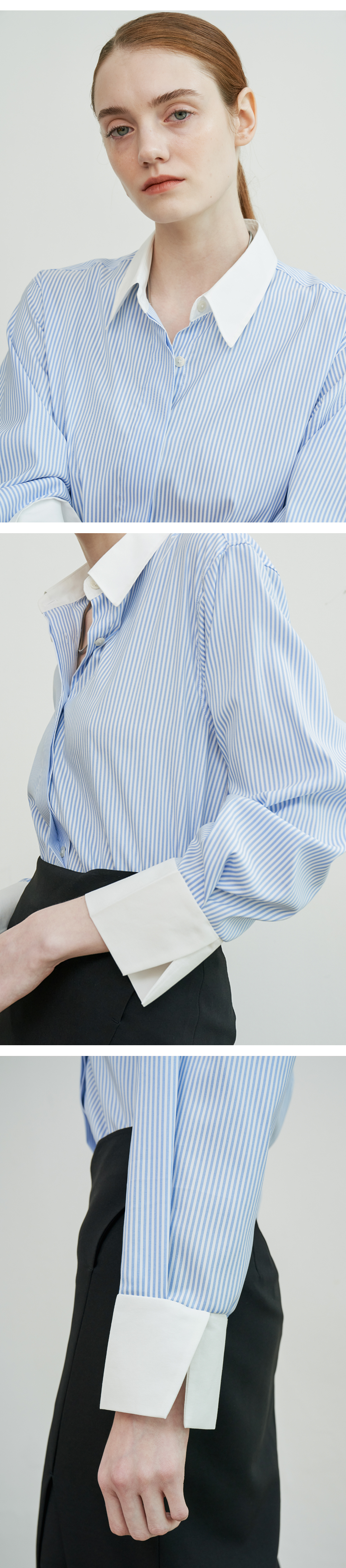 Hidden button Cuffs(커프스) 트임 디테일이 있습니다. 얇고, 시어한 소재로 여름에도 착용가능합니다.