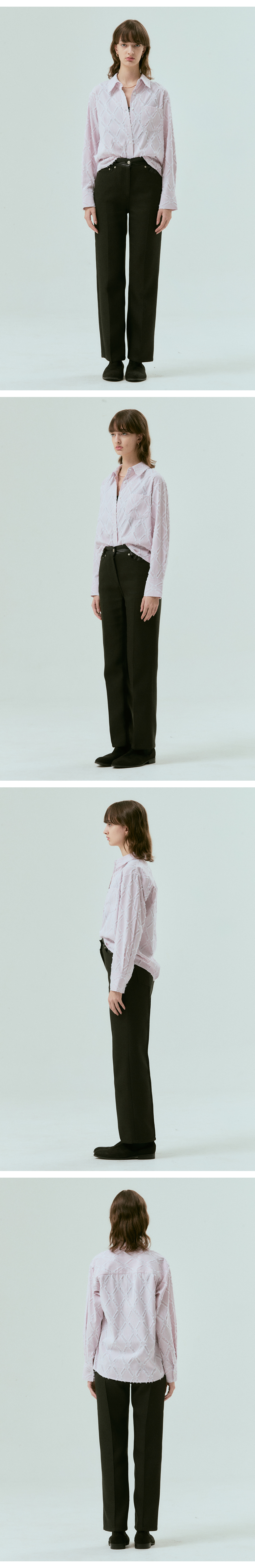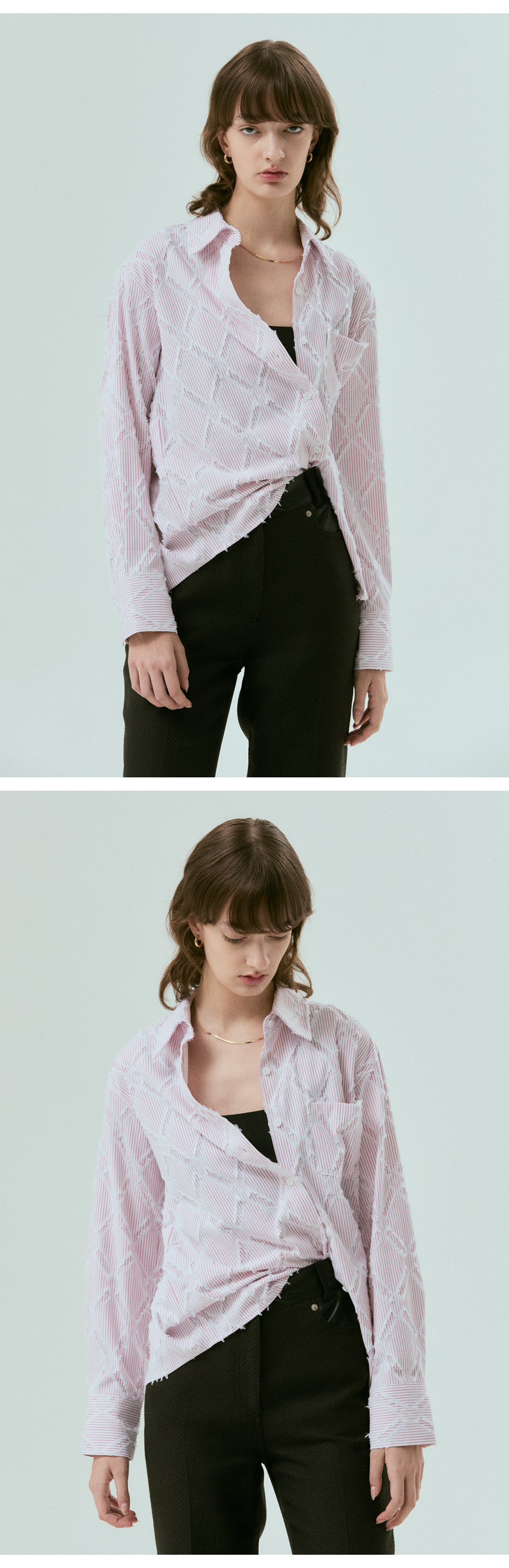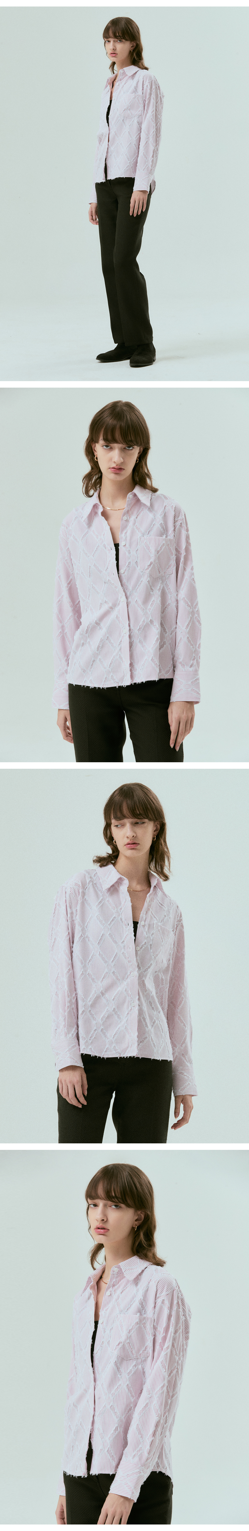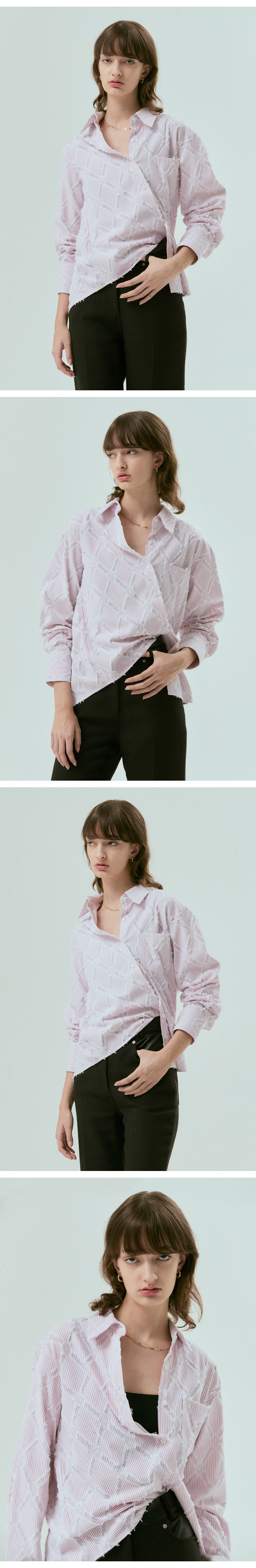 베이직한 디자인의 클래식 스트라이프 셔츠입니다. 스트라이프 바탕에 테슬 장식이 가미된 매력적인 소재를 사용하였습니다.