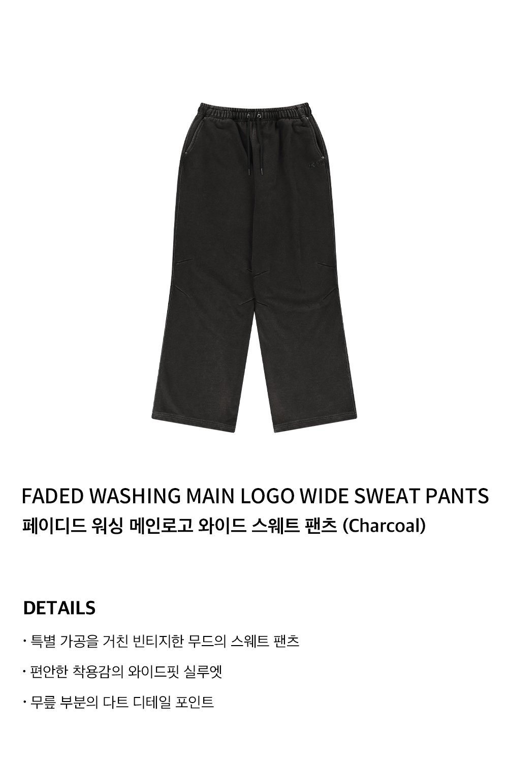 에이치덱스 페이디드 워싱 메인로고 와이드 스웨트 팬츠 차콜