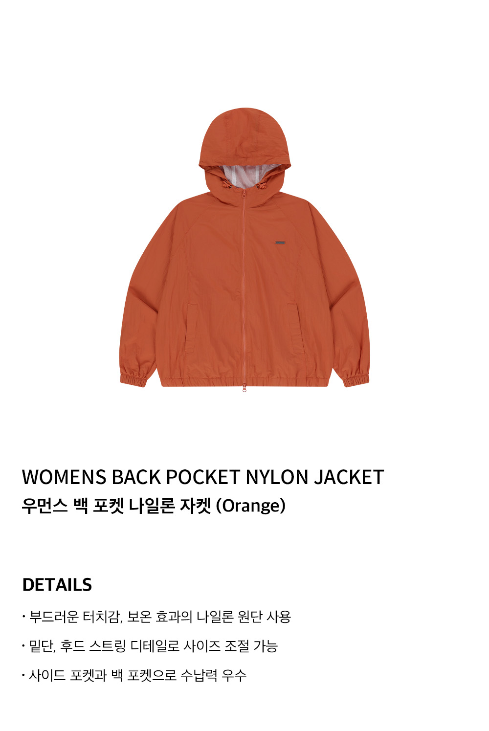 에이치덱스 우먼스 백 포켓 나일론 자켓 오렌지