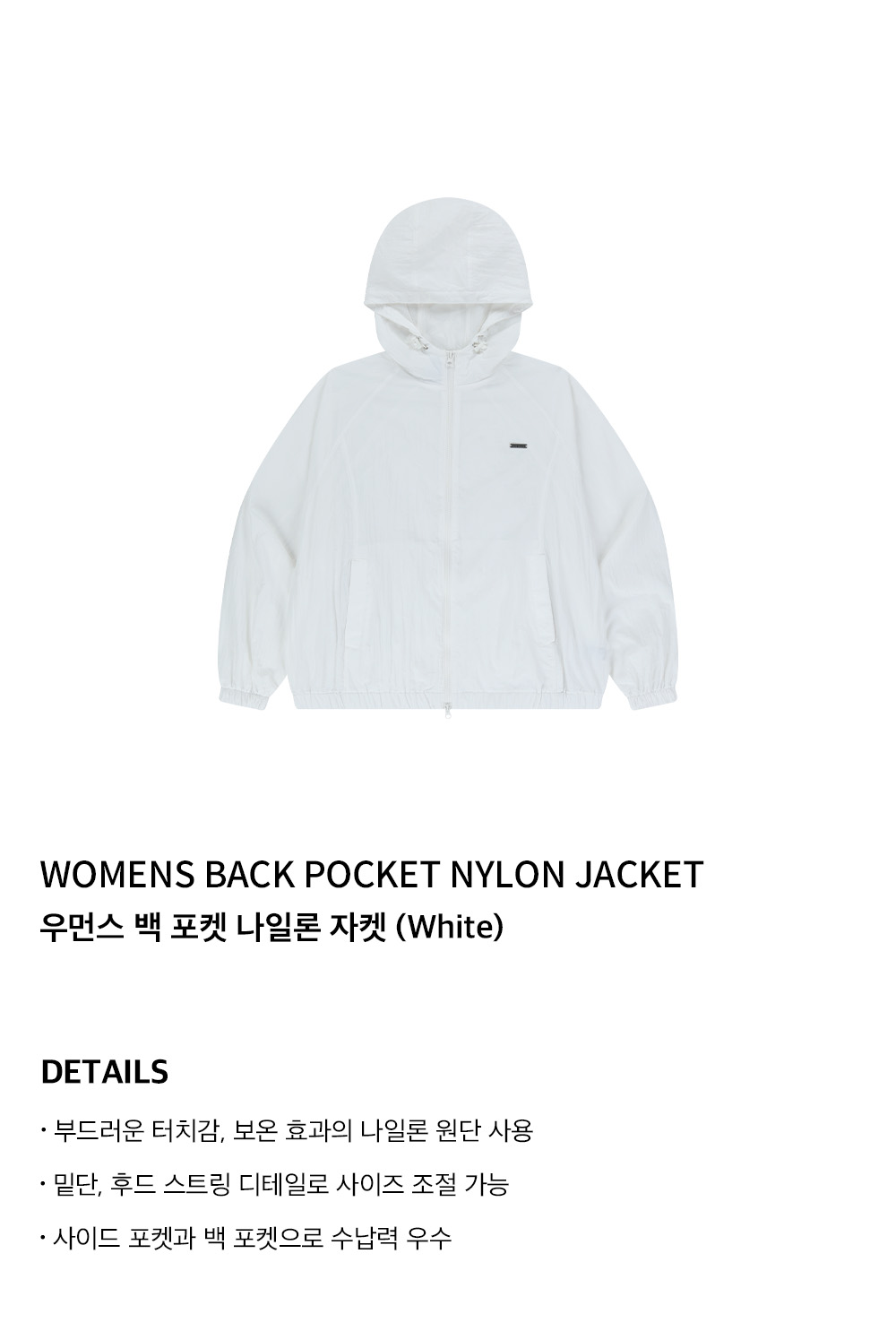 에이치덱스 우먼스 백 포켓 나일론 자켓 화이트