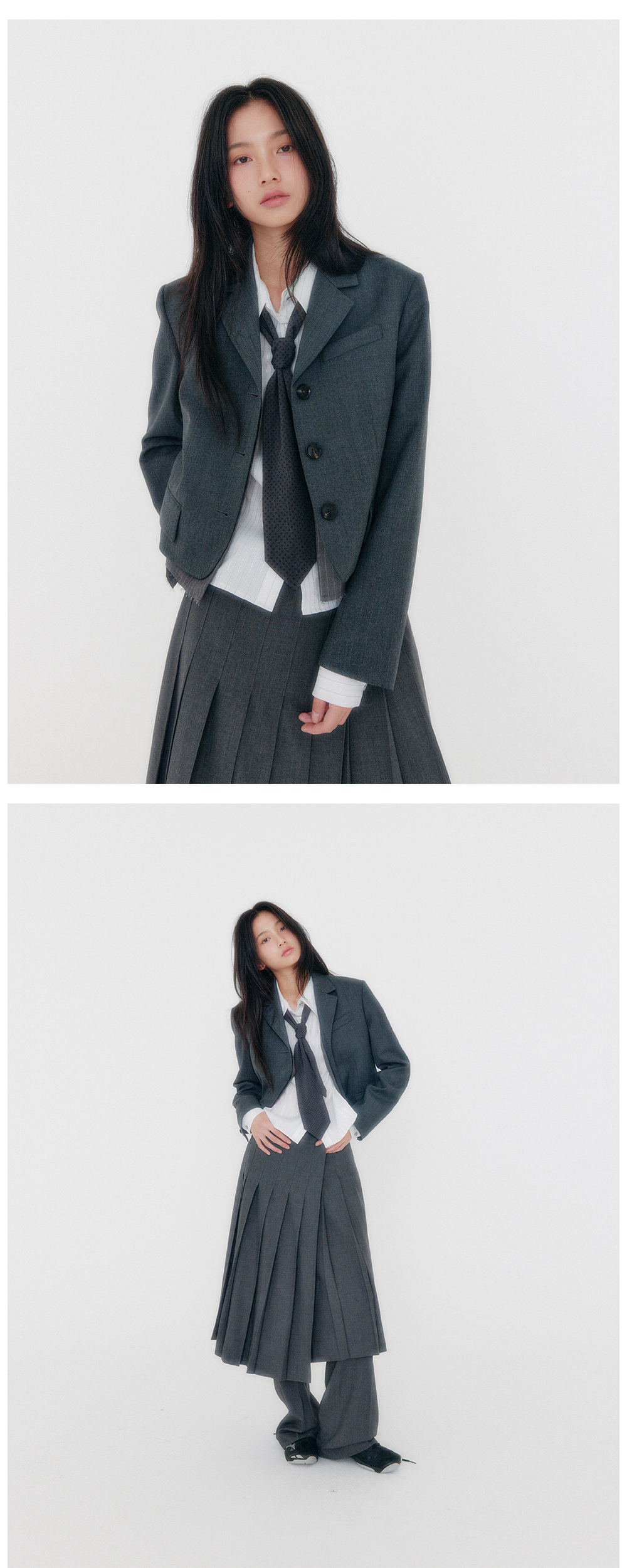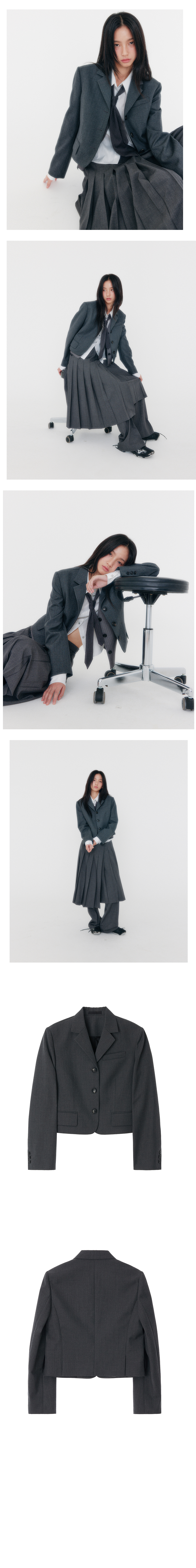 지지지 슬림 핏 크롭 블레이저 멜란지그레이