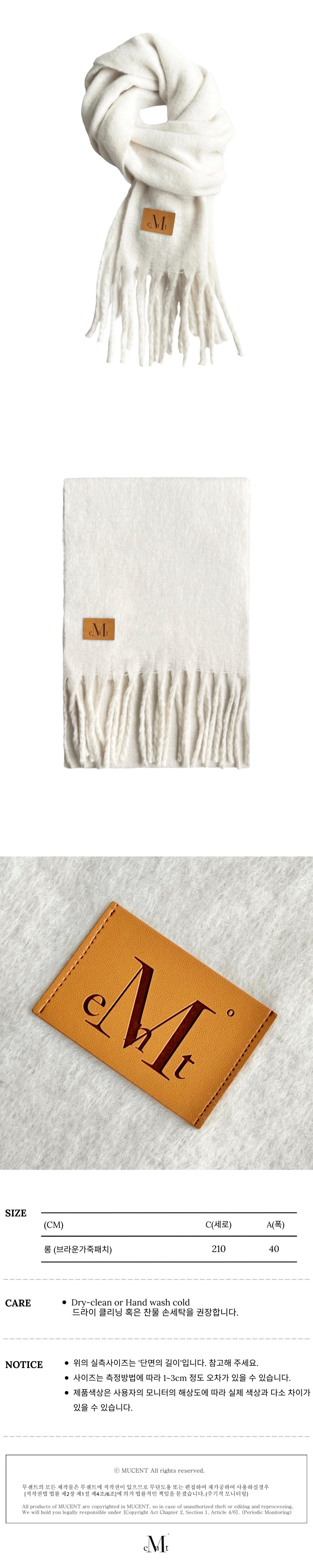 ┃Detail • 단색 컬러 • 롱 기장의 머플러 • 포슬포슬한 텍스처 • 활용도 높은 데일리한 컬러 • 가죽 패치 디테일 ┃Material : Polyester 100% ┃Care : Dry cleaning - 무센트는 말기의 행성인 이 지구에서 지속 가능한 옷들을 고민합니다. 우리는 신념을 소비하는 미닝아웃을 지지합니다.