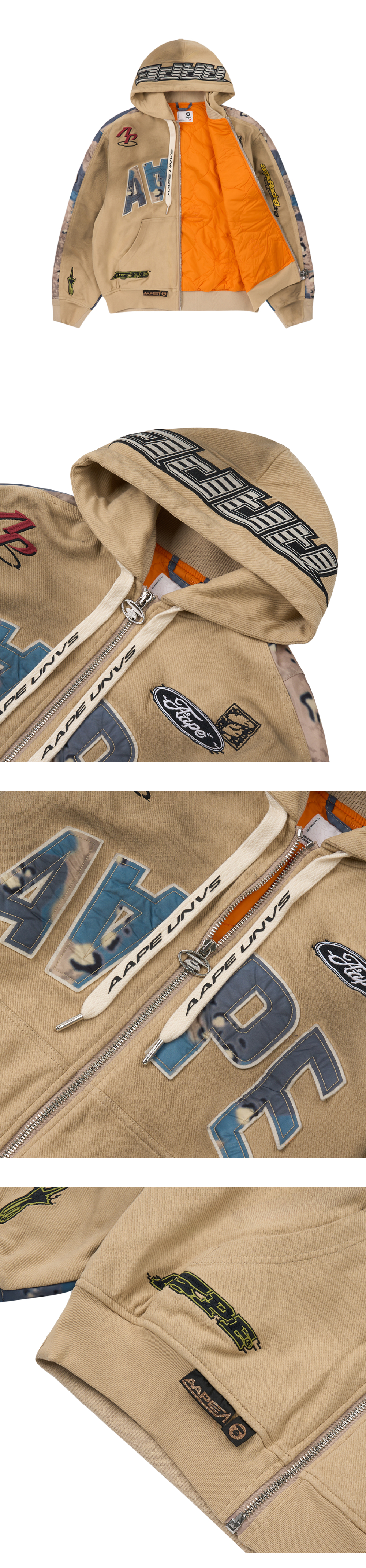 그래픽 포인트로 스트릿 무드를 완성하는 에이프의 메인 자켓 브라운 라이트 베이지입니다. - 뒷면 전체 그래픽 - 후드 스트링에 포인트 그래픽 - 밑단에 로고 포인트 라벨