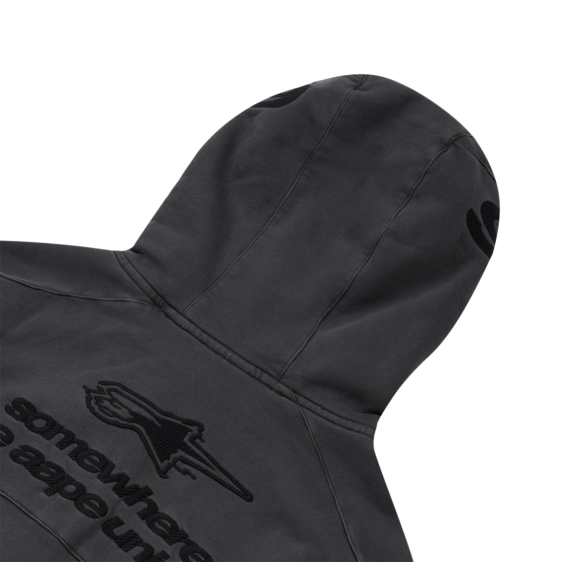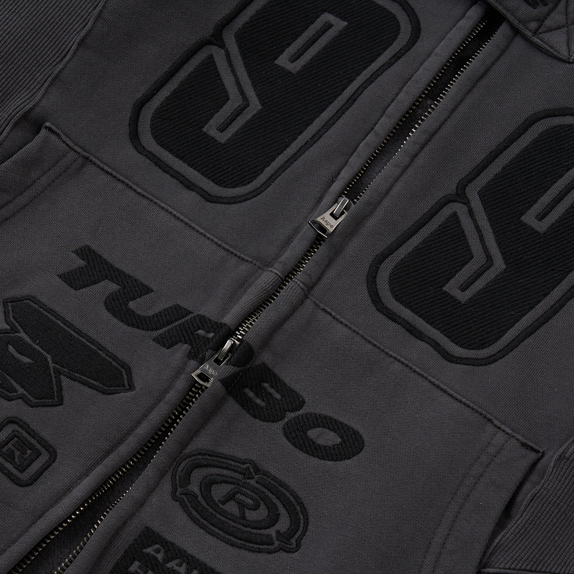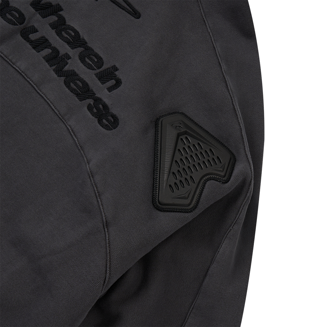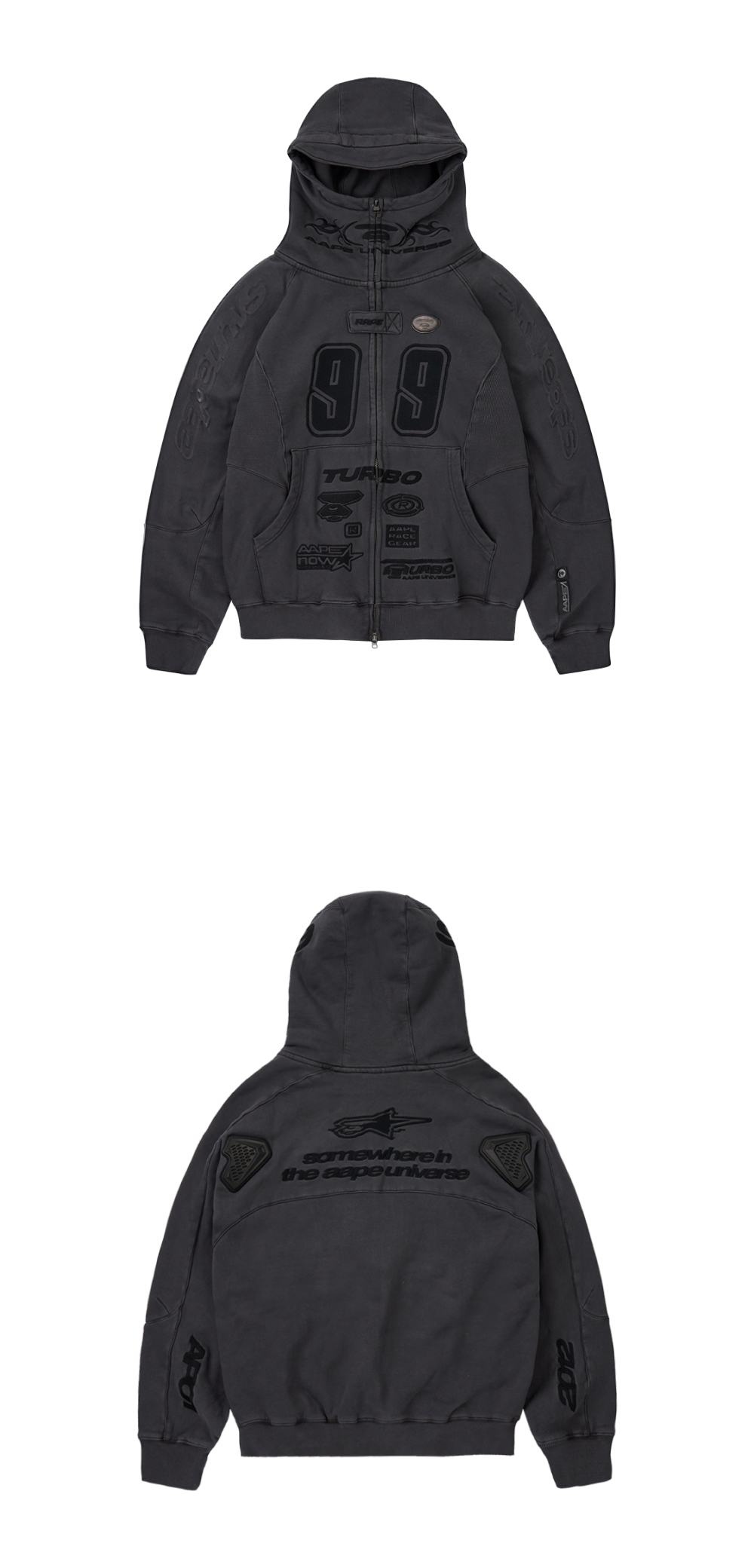 컬러부터 그래픽까지 올 블랙으로 시크한 무드를 나타내는 에이프의 메인 집업 스웨터 라이트입니다. - 후드 넥라인 그래픽 - 빈티지 워싱 - 백 및 심 포인트