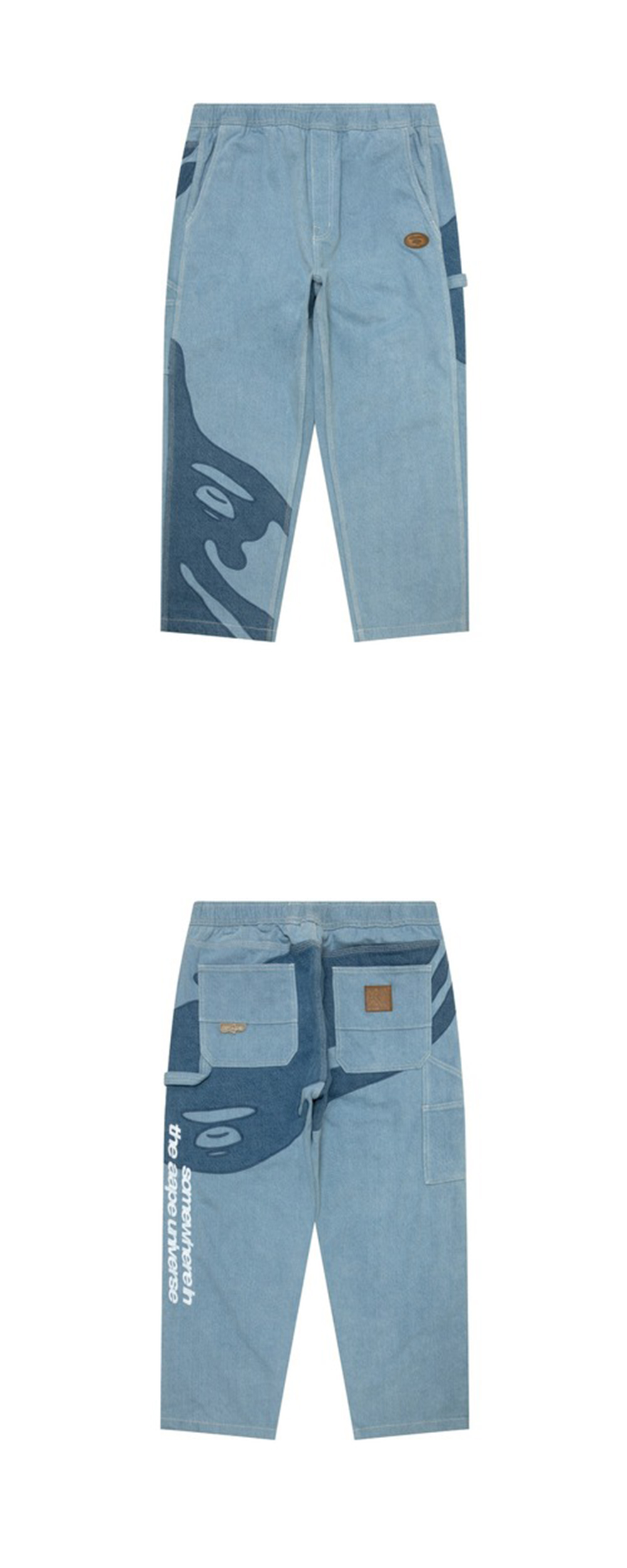 귀여운 에이프 얼굴이 앞뒤에 새겨진 에이프의 메인 우븐 팬츠입니다. - 카펜터 팬츠 기반의 디자인 - 후드티와 매치하기 좋은 오버한 실루엣 - 전/후면 에이프 헤드 패턴 - 후면 로고 자수 - 좌측 백포켓 러버 택 디테일 - 적당한 두께감 * 에이프 메인 자켓 라이트 블루 컬러와 셋업으로 착용 가능