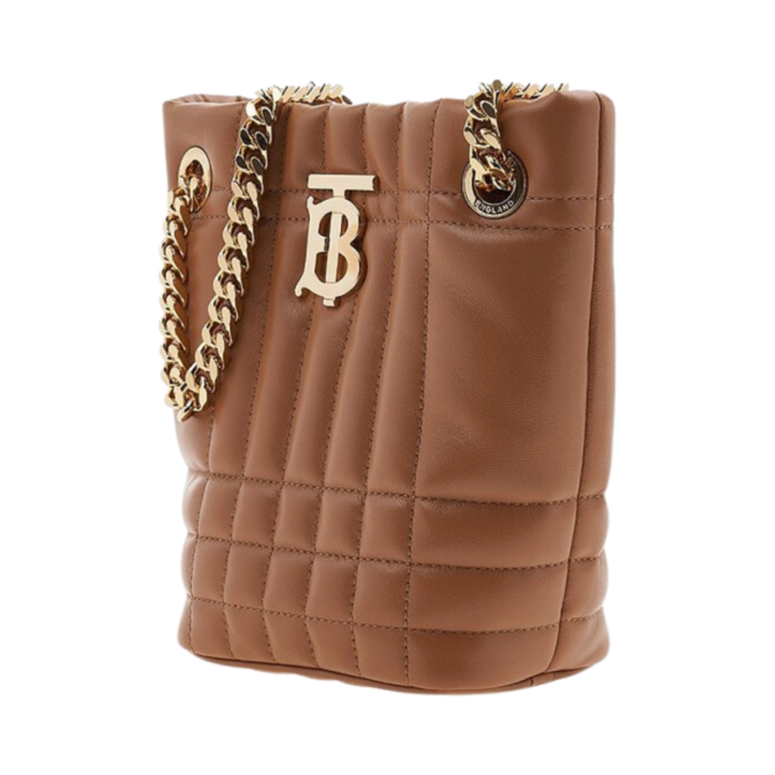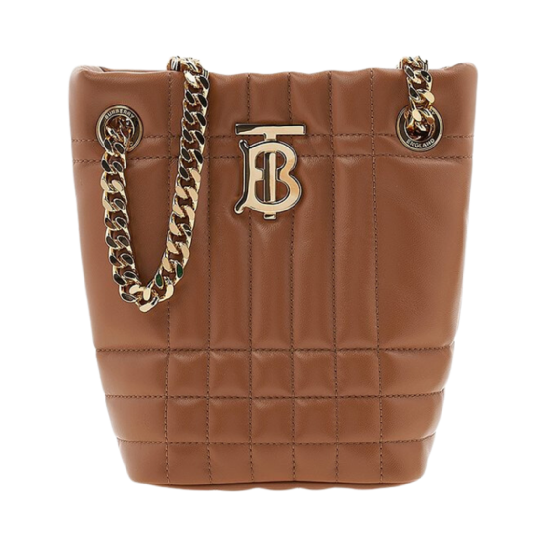 Burberry Quilted Leather Lola Mini TB Bucket Bag Marple Brwon