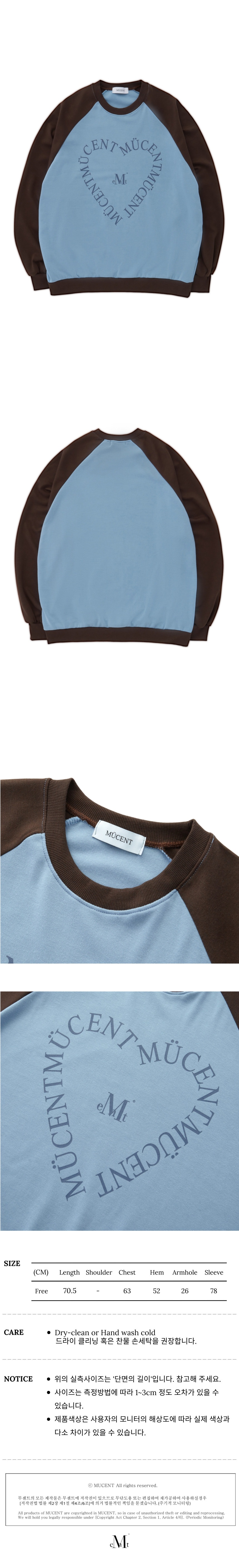 ┃Detail • 트렌디한 컬러 배색 디자인 • 전면 무센트 하트 레터링 로고 • 래글런 숄더 패턴으로 자연스러운 착용감 • 활동성 좋은 적당히 얇은 두께감 • 레이어드에 용이한 두께감 • 루즈한 실루엣의 맨투맨 ┃Material : Polyester 100% ┃Care : Dry cleaning - 무센트는 말기의 행성인 이 지구에서 지속 가능한 옷들을 고민합니다. 우리는 신념을 소비하는 미닝아웃을 지지합니다.