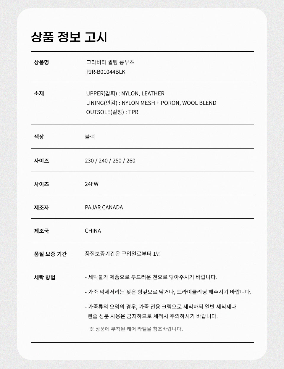 상품정보제공 고시