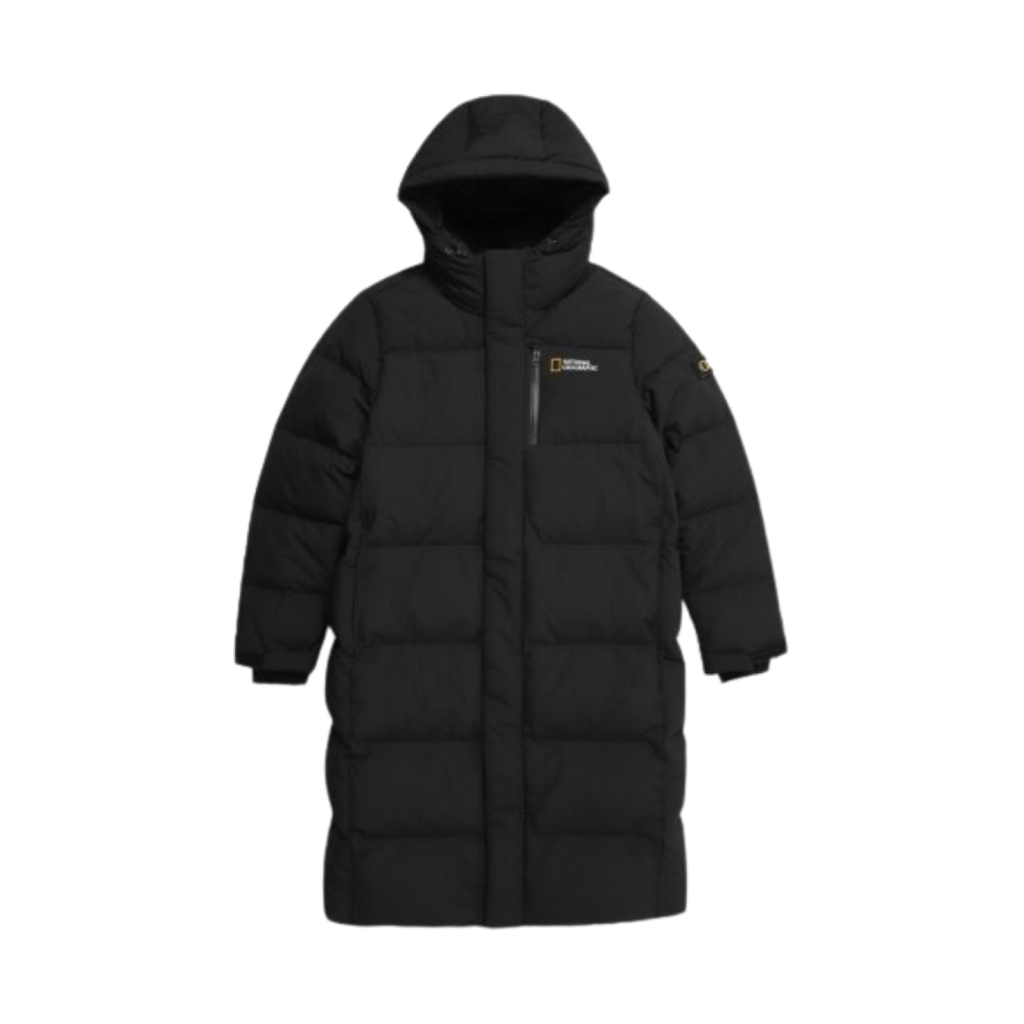 (W) National Geographic Cayman Pro Long Length Goose Down Jumper Big Logo Black